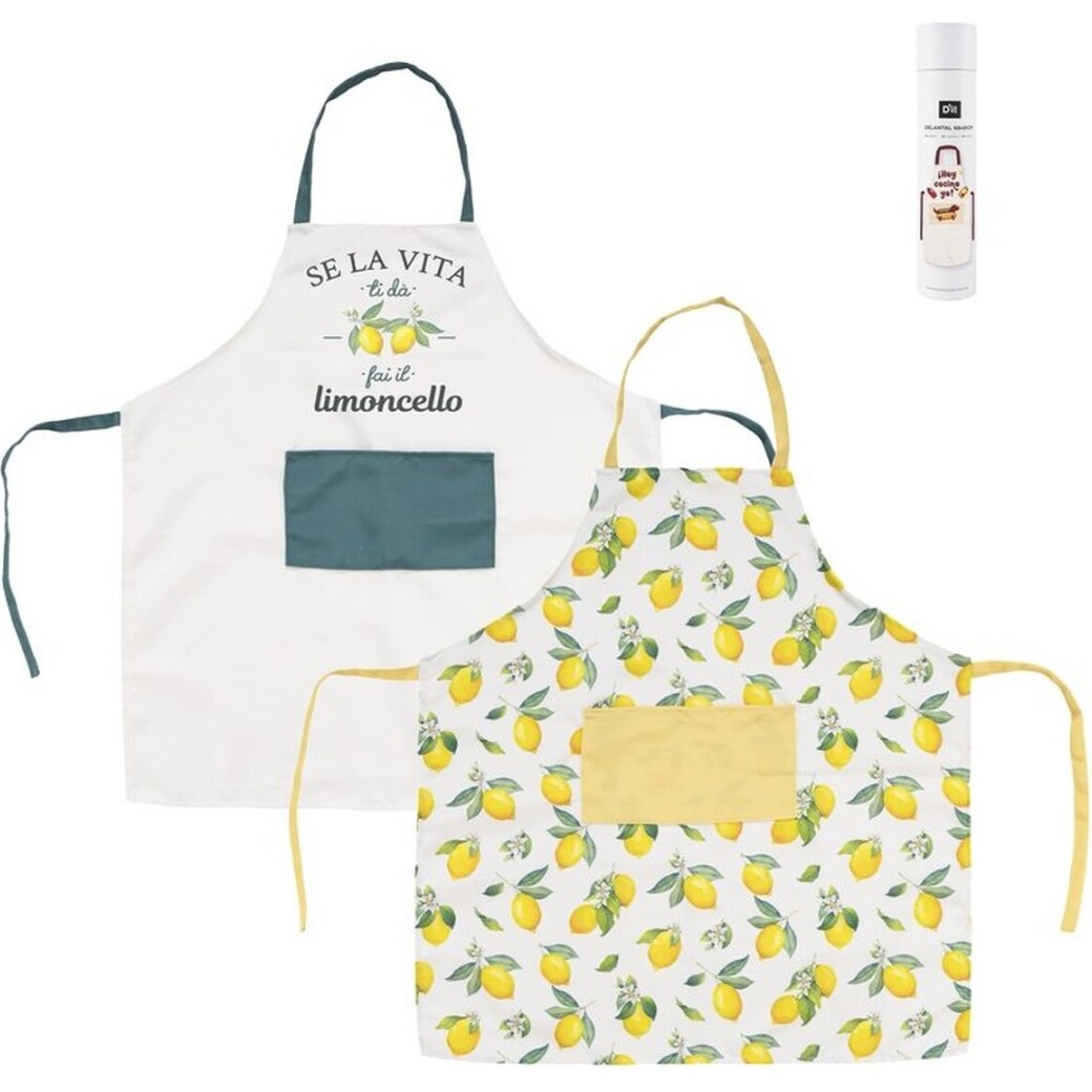 Lot mère et fille composé de deux tabliers assortis qui apportent une note gaie et estivale à votre cuisine. Motif citron et finitions contrastées combinant style et fantaisie.