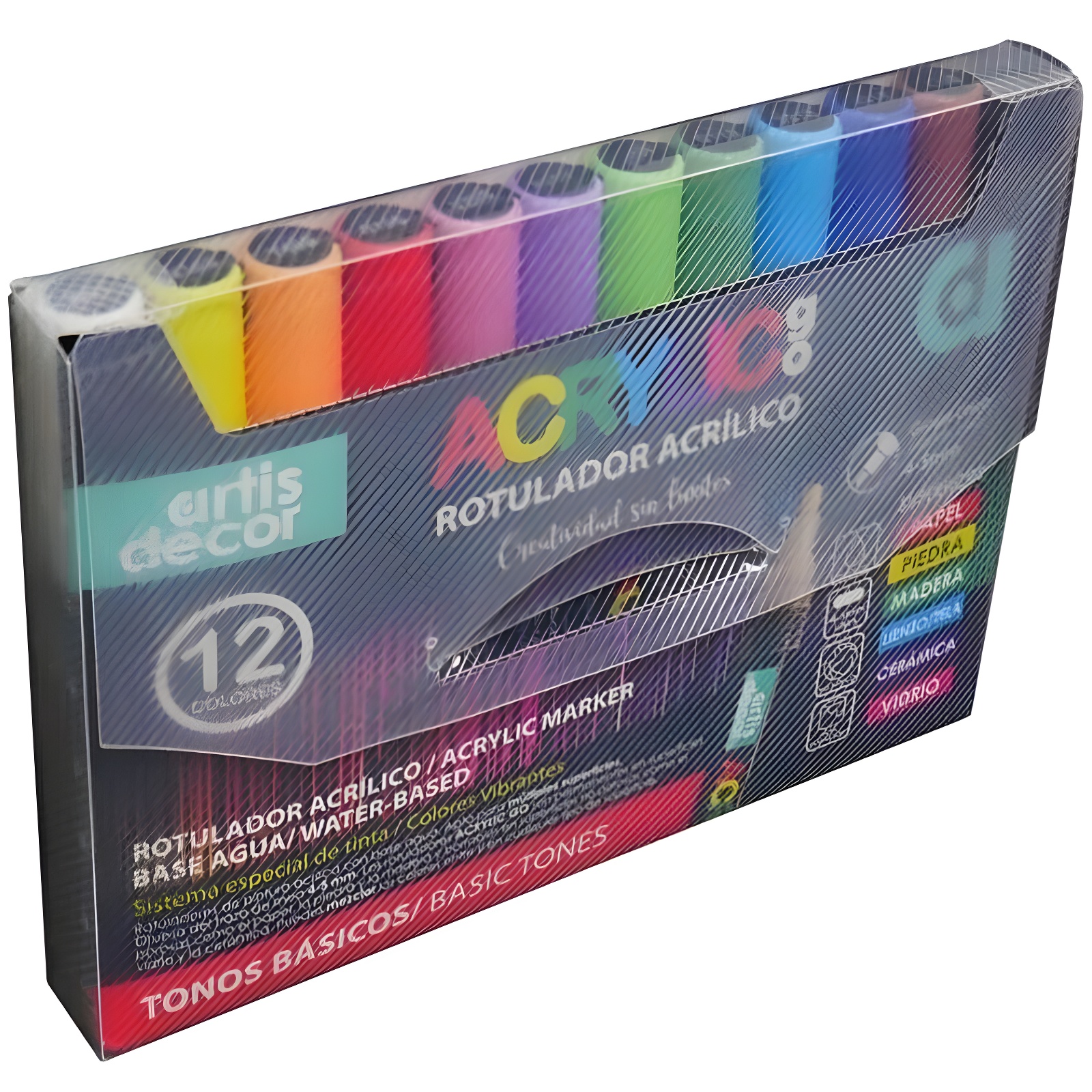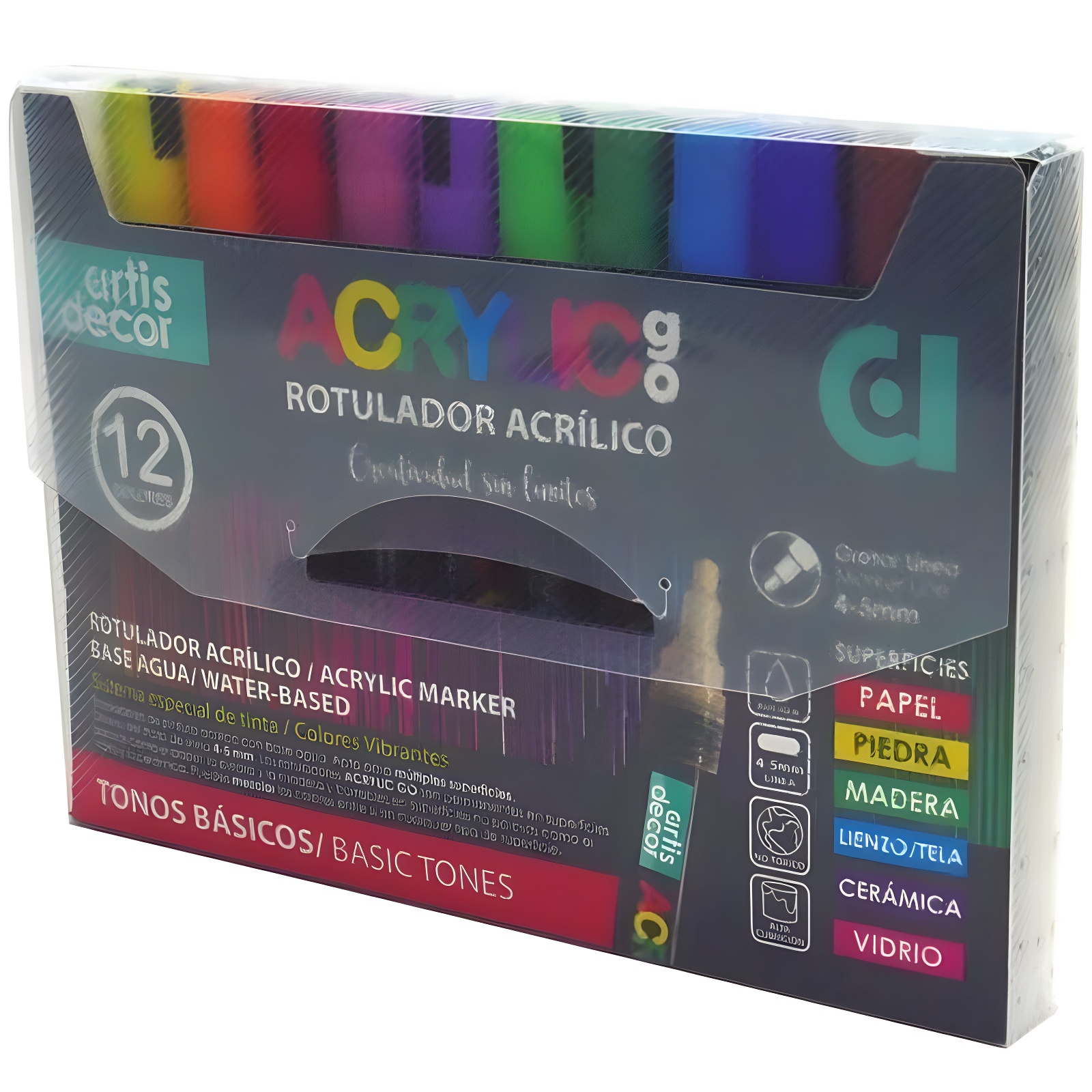- Pack de 12 marqueurs acryliques à base d'eau.