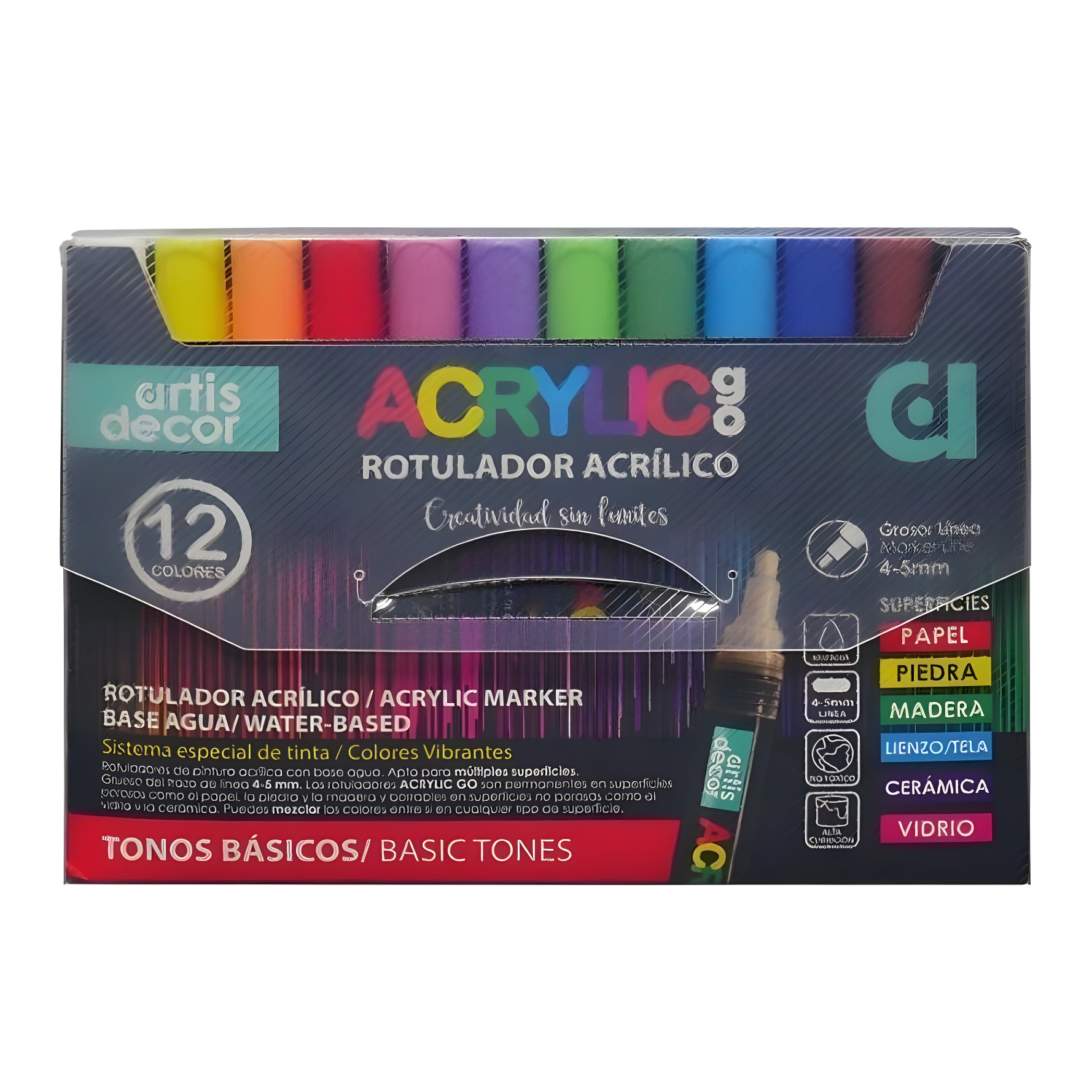 Marqueurs acryliques Acrylic Go 4-5 mm - couleurs de base - Artis Decor - 12 unités