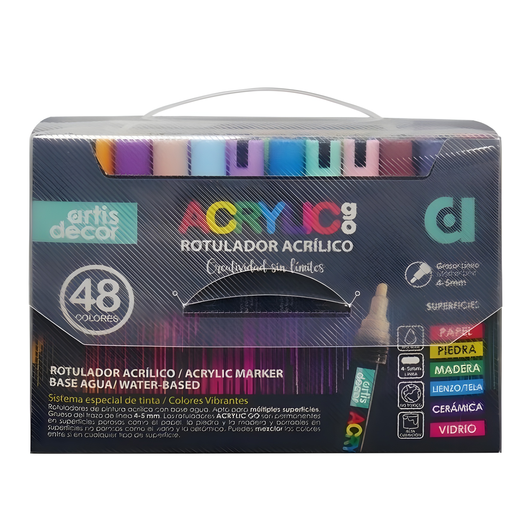 - Boîte de 48 marqueurs acryliques à base d'eau.