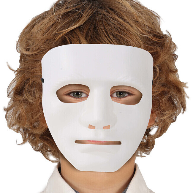 Masque blanc pour enfant que vous pouvez utiliser pour une multitude de déguisements et d'occasions, qu'elles soient thématiques ou libres.