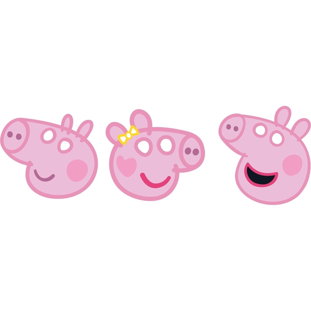 Lot de 6 masques officiels Peppa Pig aux designs colorés et reconnaissables, conçus pour faire sourire les tout-petits.