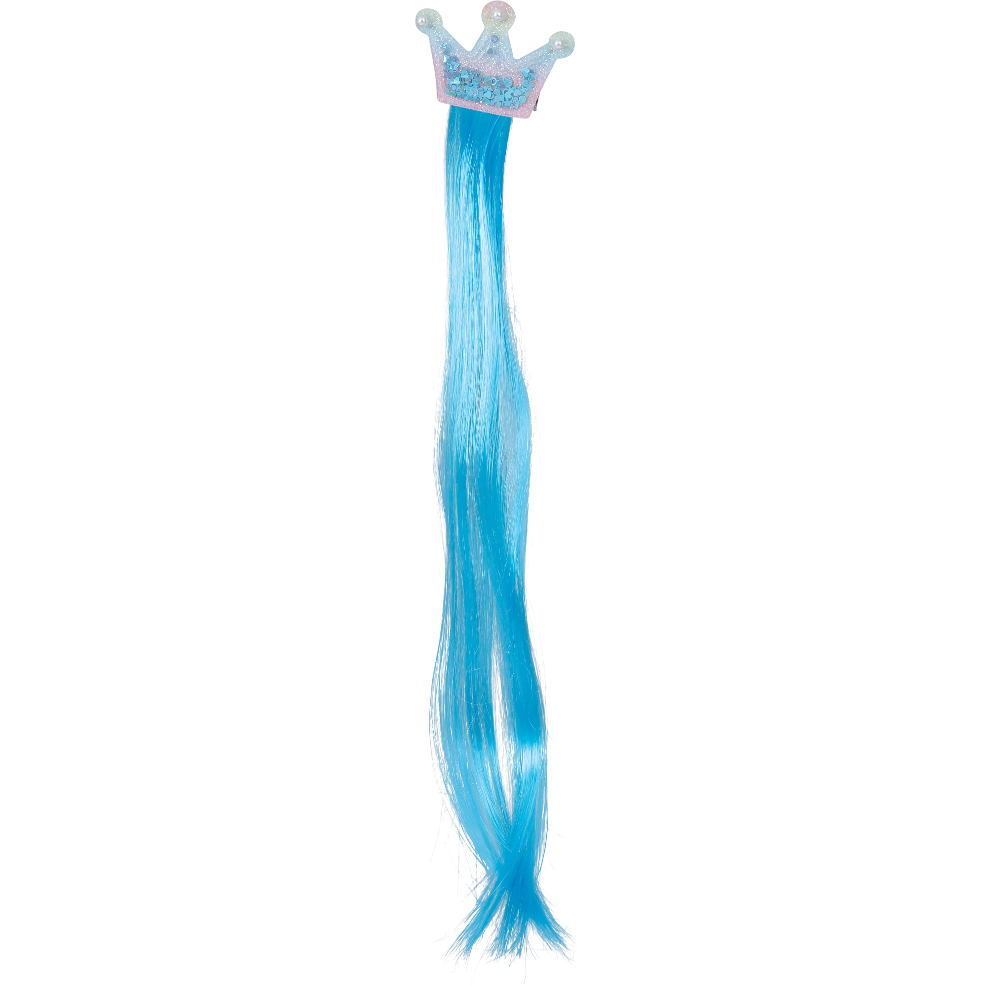 Mèche en PVC bleue avec clip couronne apportant une touche ludique et féerique à votre coiffure. Elle mesure 35 cm et se fixe aisément grâce à un clip sécurisé, sans accessoires supplémentaires. Sa teinte et son éclat rehaussent instantanément tout look de fête. Légère et agréable à porter, elle tient confortablement pendant toute la durée de l'événement.
