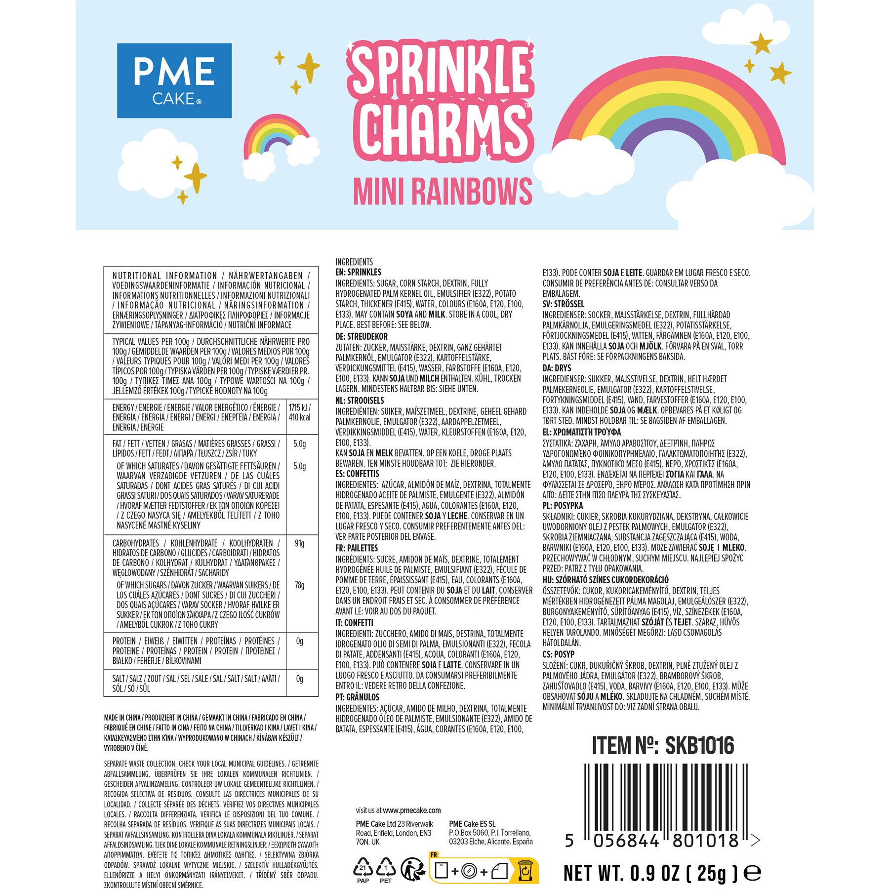 Ingrédients: sucre, amidon de maïs, dextrine, huile de palmiste totalement hydrogénée, émulsifiant (E322), amidon de pomme de terre, épaississant (E415), eau, colorants (E160A, E100, E120, E133).