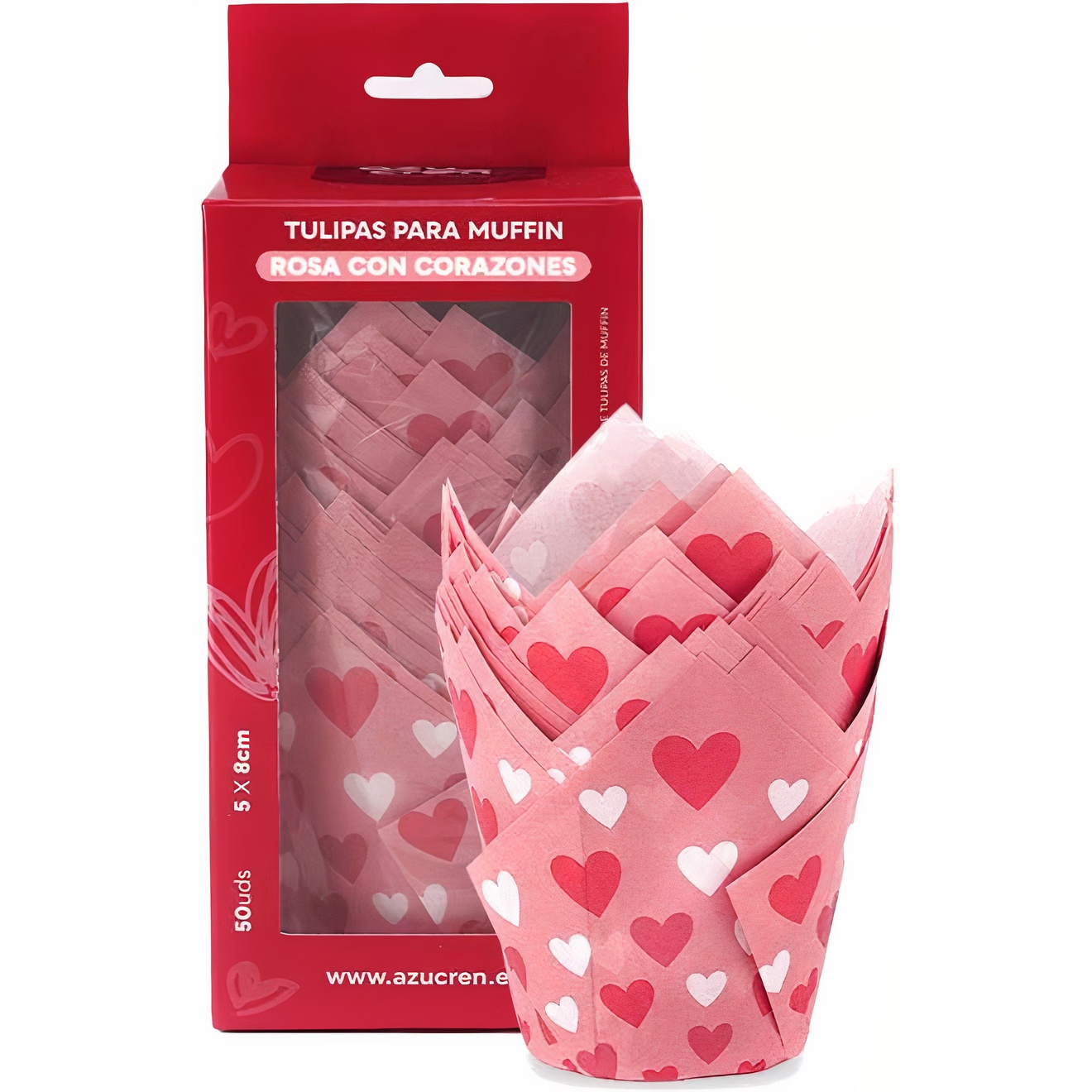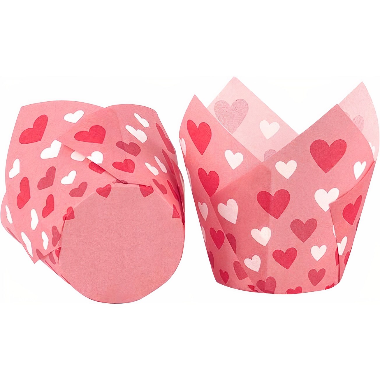 Moules tulipe en papier pour muffins motif coeurs Saint?Valentin - Azucren - 50 pièces