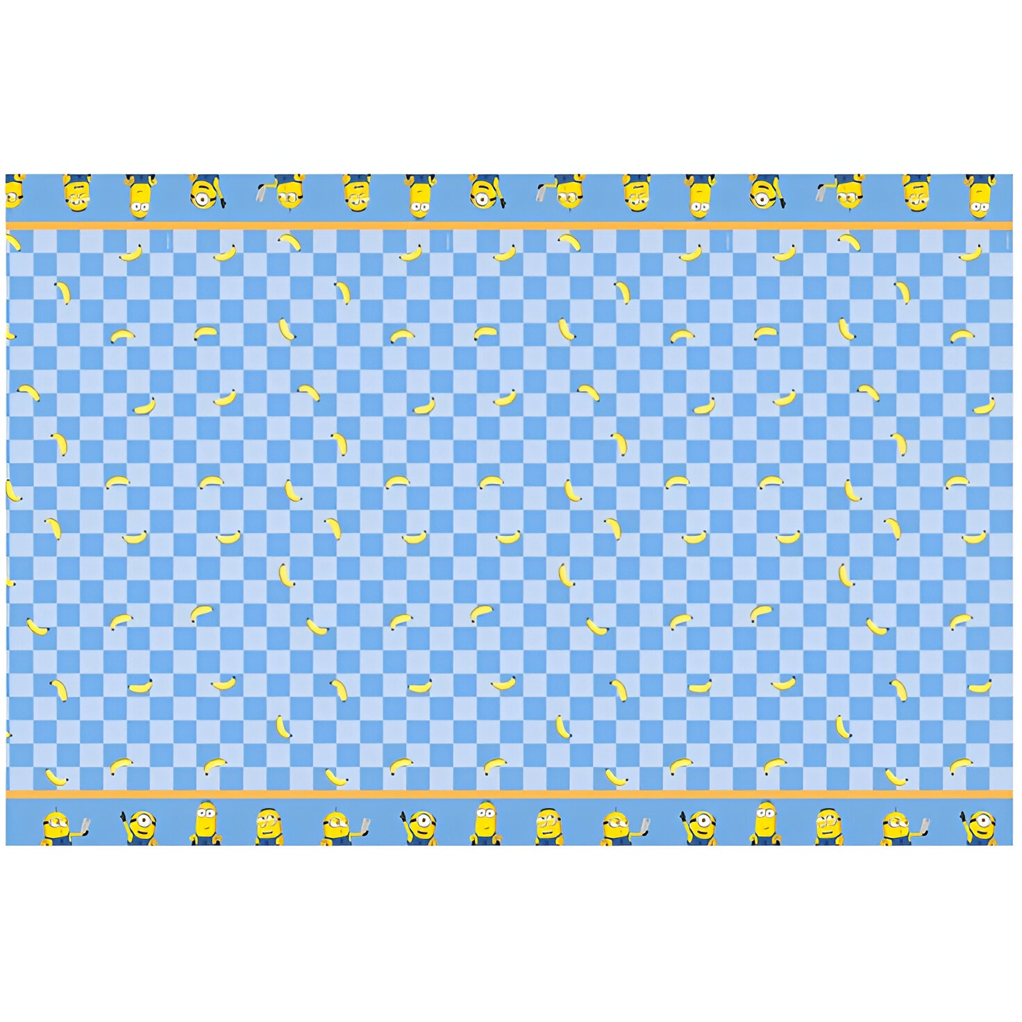 Nappe jetable au design Minions dans des tons bleu et jaune. Elle présente un fond à carreaux avec de petites bananes et une bordure décorée des personnages amusants, idéale pour égayer la table de vos enfants. Dimensions déployées: 180 x 120 cm. Design léger et jetable qui facilite la mise en place et le rangement après la célébration.