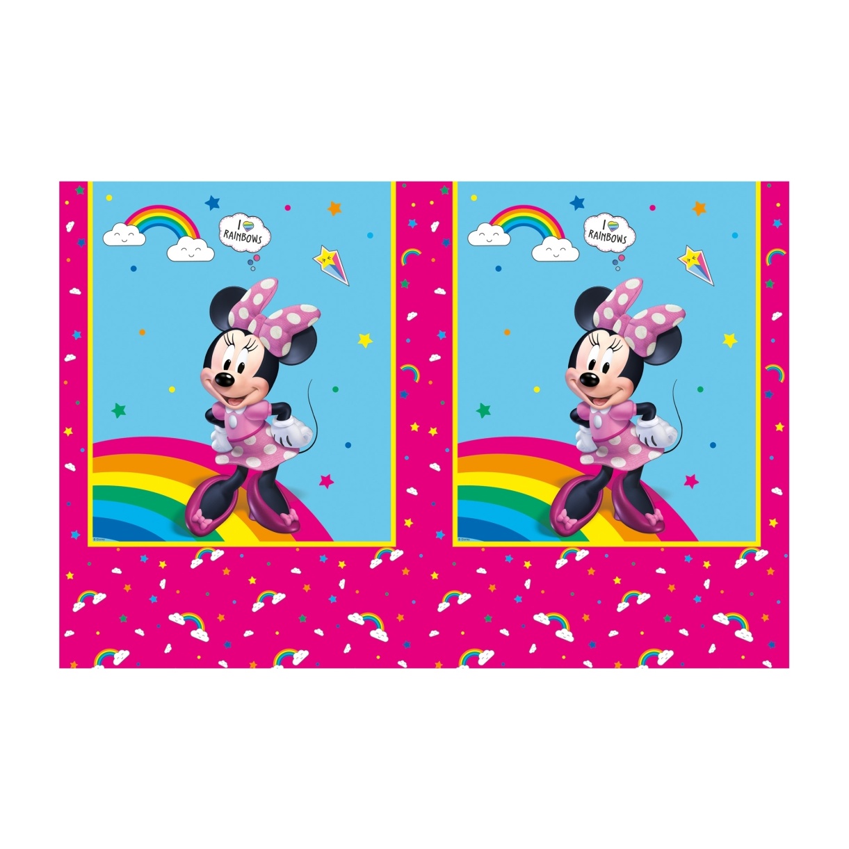 Nappe décorative avec l'emblématique Minnie Mouse et un motif arc-en-ciel apportant couleur et bonne humeur à vos tables d'enfants.
