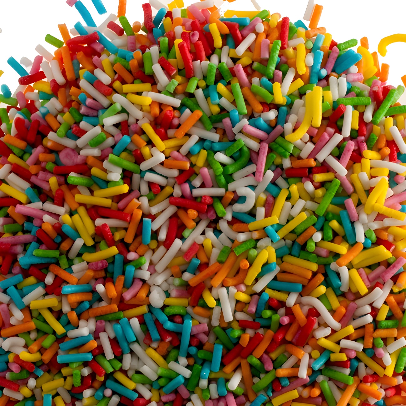 Ingrédients multicolores: Sucre, dextrine de tapioca, glucose de maïs, graisse de coco, sirop de glucose de maïs, sirop de glucose de blé, agent de glaçage (E553b, E901), arôme (citron, orange), colorants (E102, E110, E122, E124, E131).