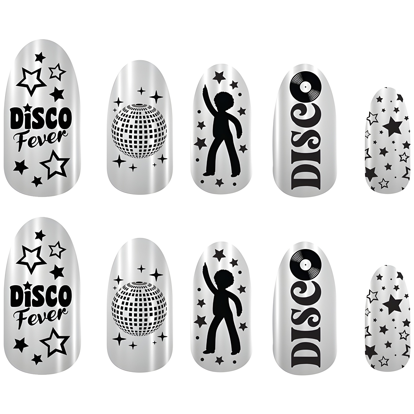 • Matière: PVC - finition argentée avec motifs disco (boule à facettes, silhouette et étoiles).