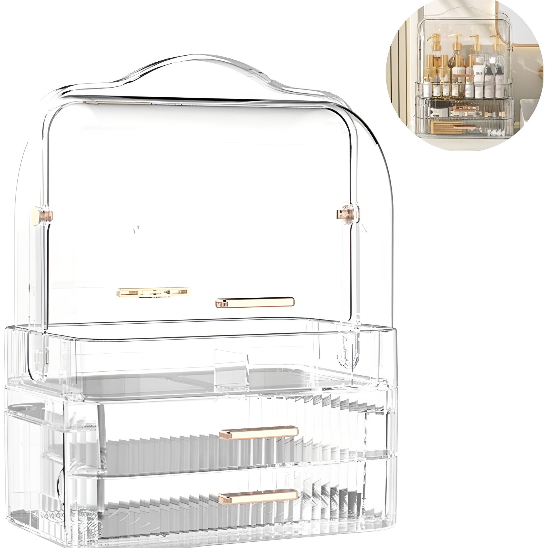 Organisateur de cosmétiques transparent et compact, conçu pour garder vos produits bien rangés et toujours visibles.
