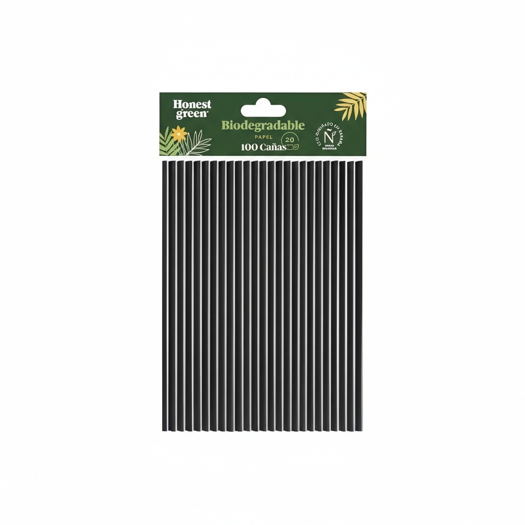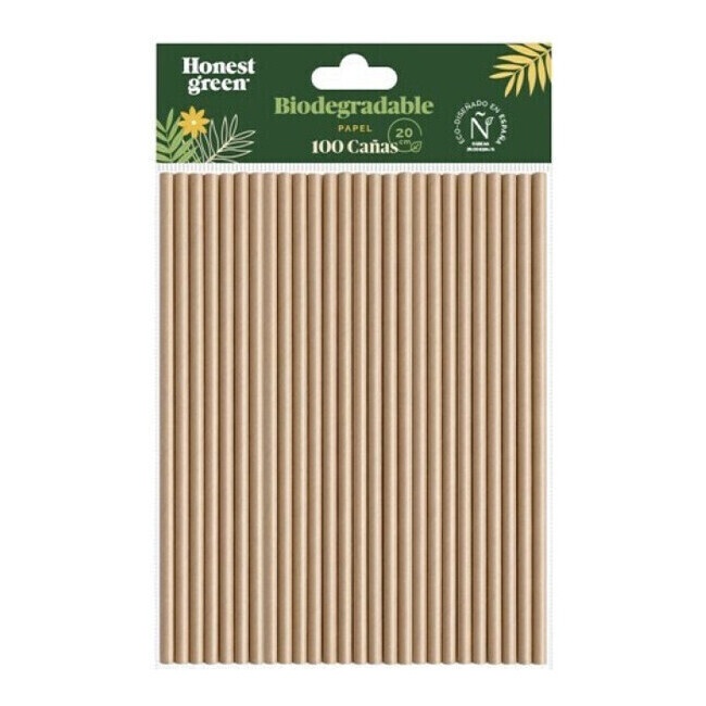 Pailles de 20 cm en papier biodégradable - Honest Green - 100 unités
