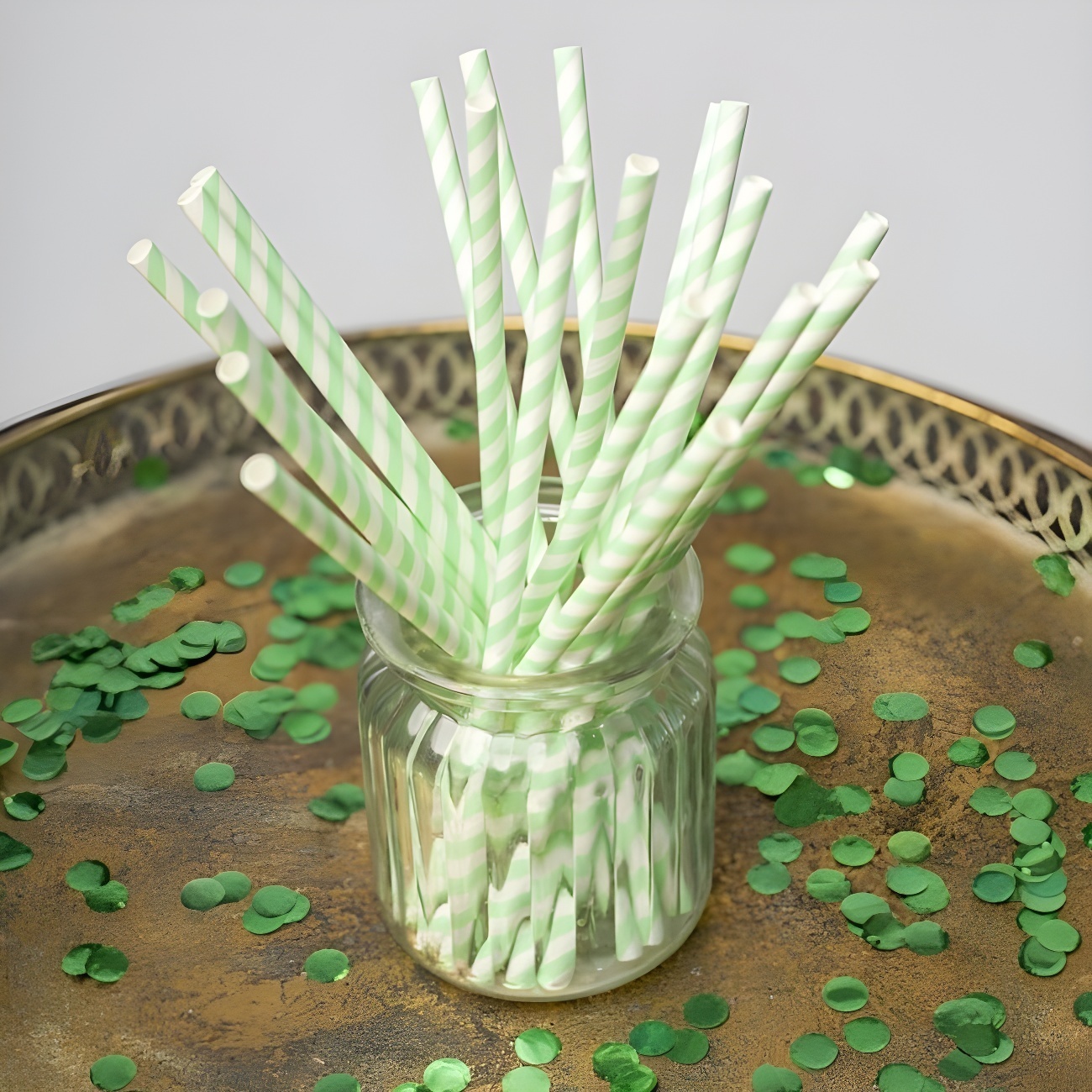 Pailles en papier blanc et rayures de couleur - 20 unités
