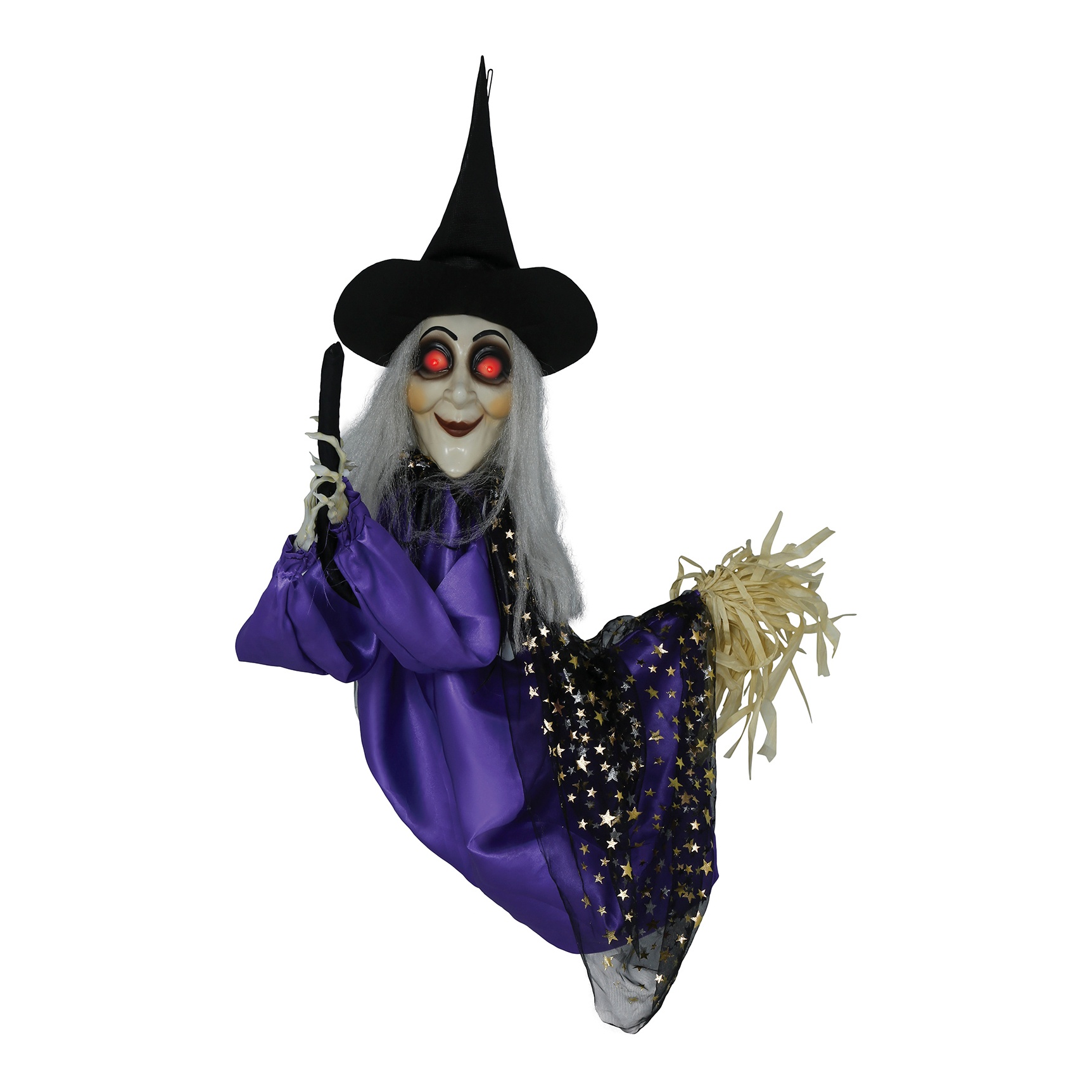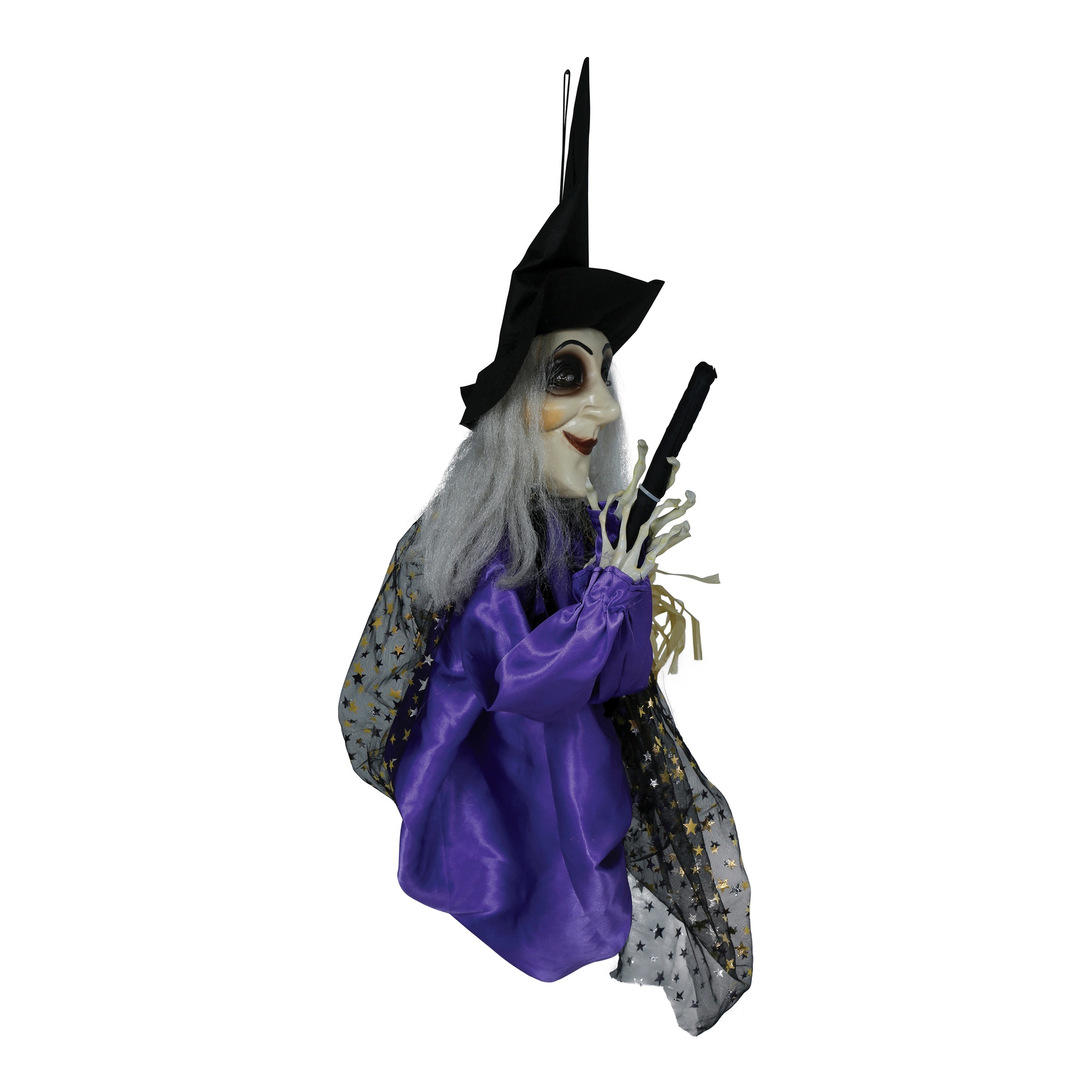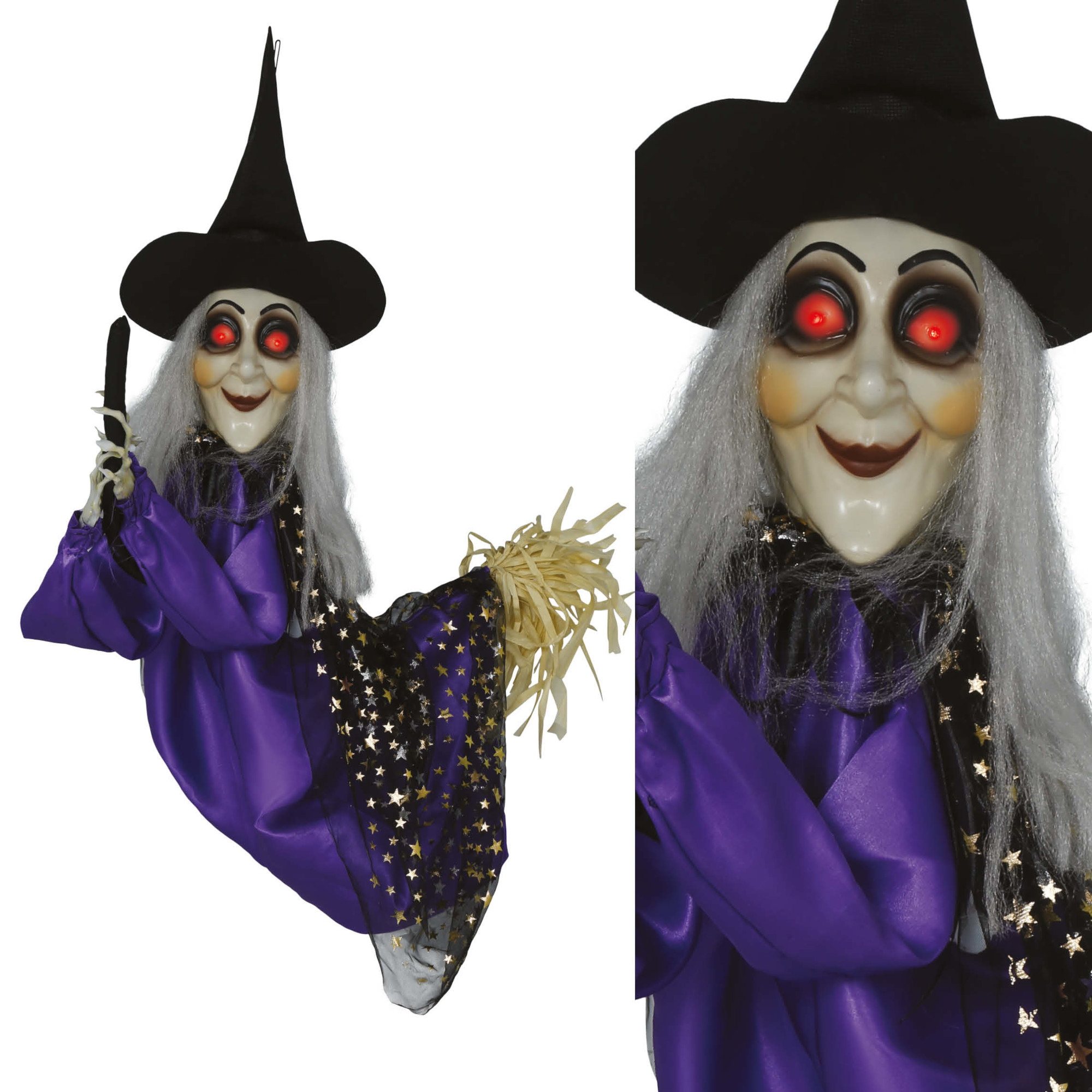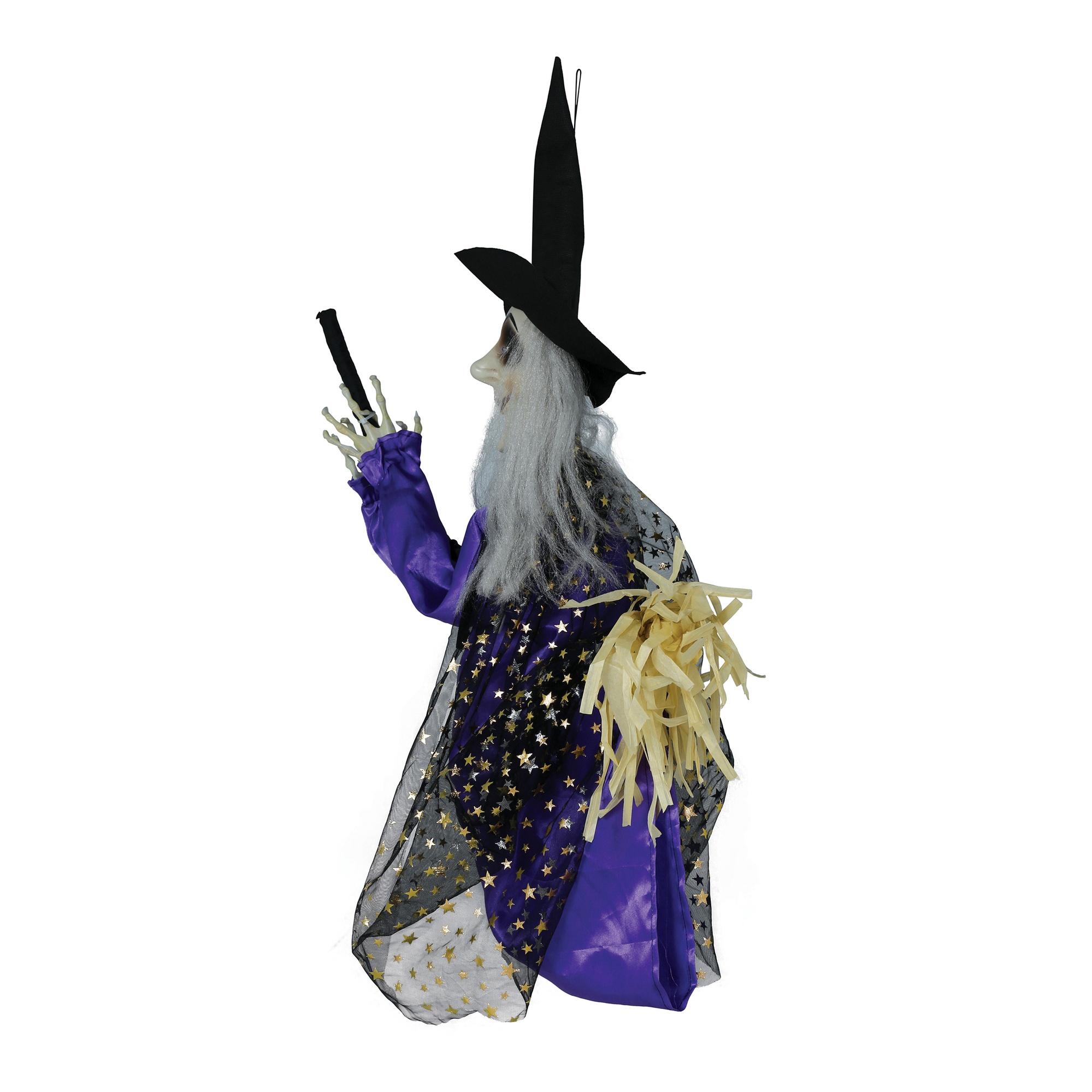 Pendentif de sorcière sur balai avec lumière, son et mouvement de 75 cm