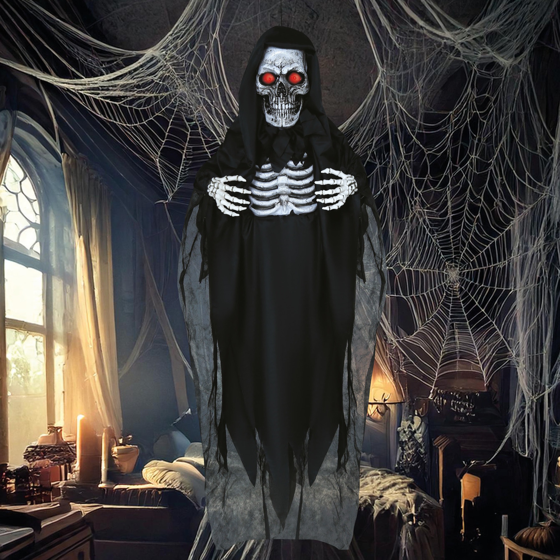 Pendentif de squelette aux yeux rouges avec lumière et son de 1,80 m