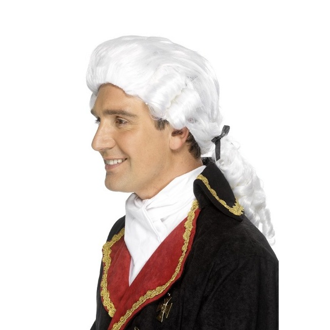 Perruque d'époque blanche avec queue de cheval