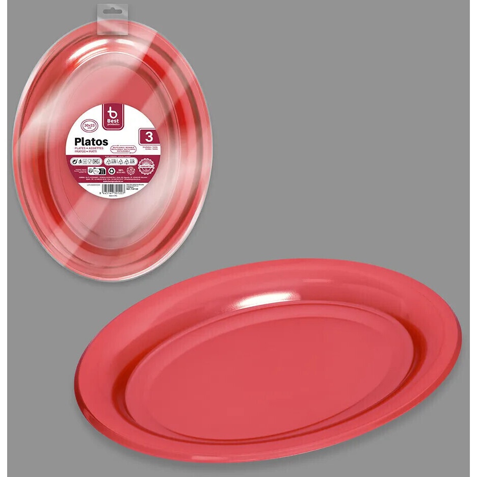Plateau de 30 x 23 cm ovale en plastique - 3 unités