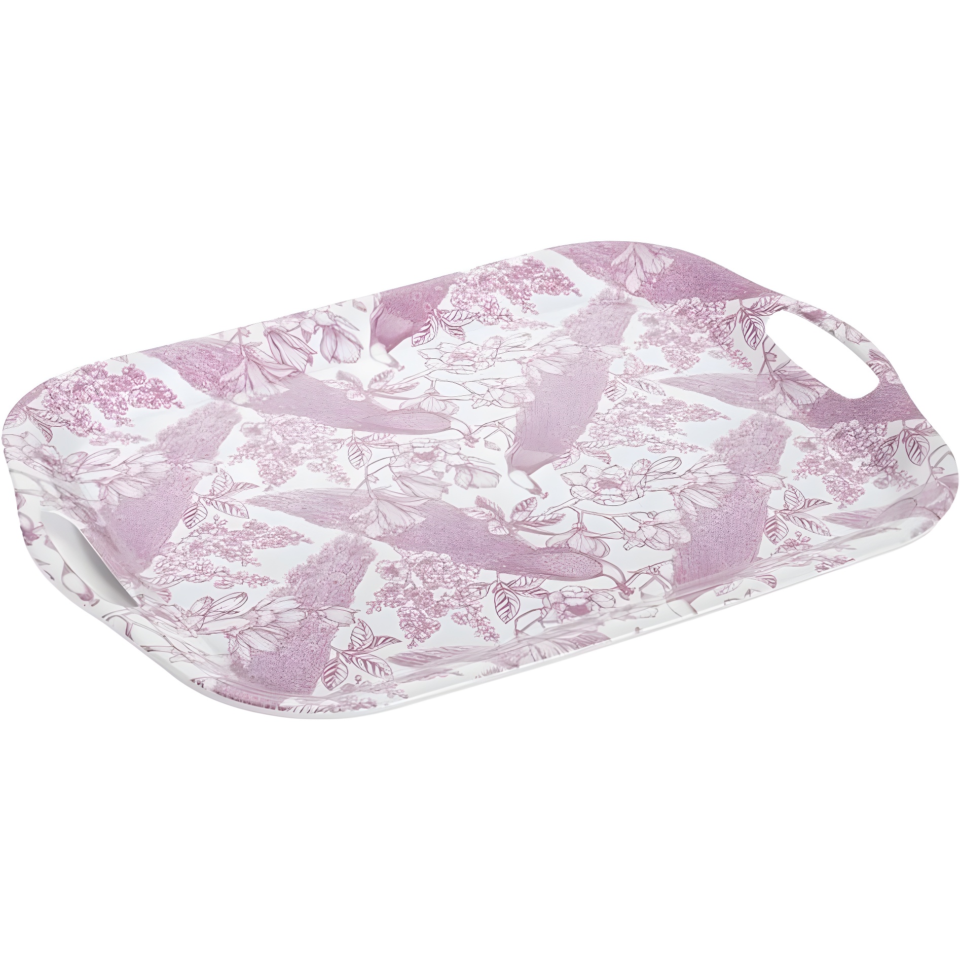 Plateau 41 x 29 cm motif floral mauve