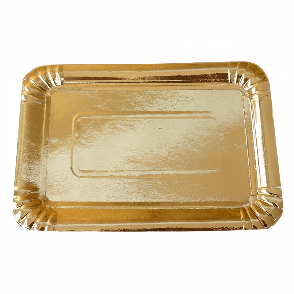 Plateaux jetables au fini doré, conçus pour sublimer vos présentations. Leur format rectangulaire garantit une base stable pour amuse-bouches, desserts et canapés. Parfaits si vous souhaitez apporter une touche sophistiquée sans contraintes logistiques. Grand lot idéal pour l'organisation de réceptions et pour les services de traiteur.