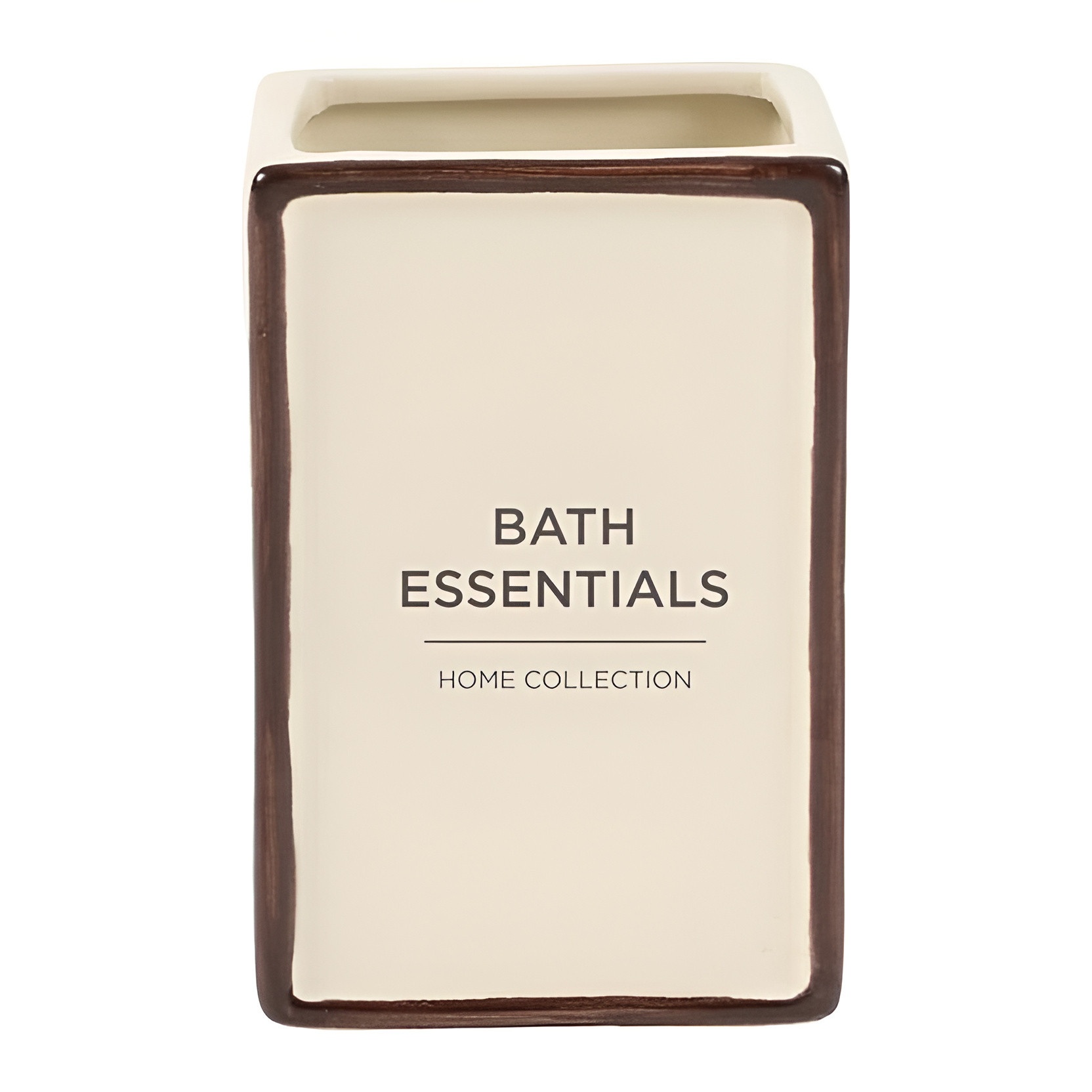 Finition neutre avec la sérigraphie Bath Essentials pour un détail décoratif discret.