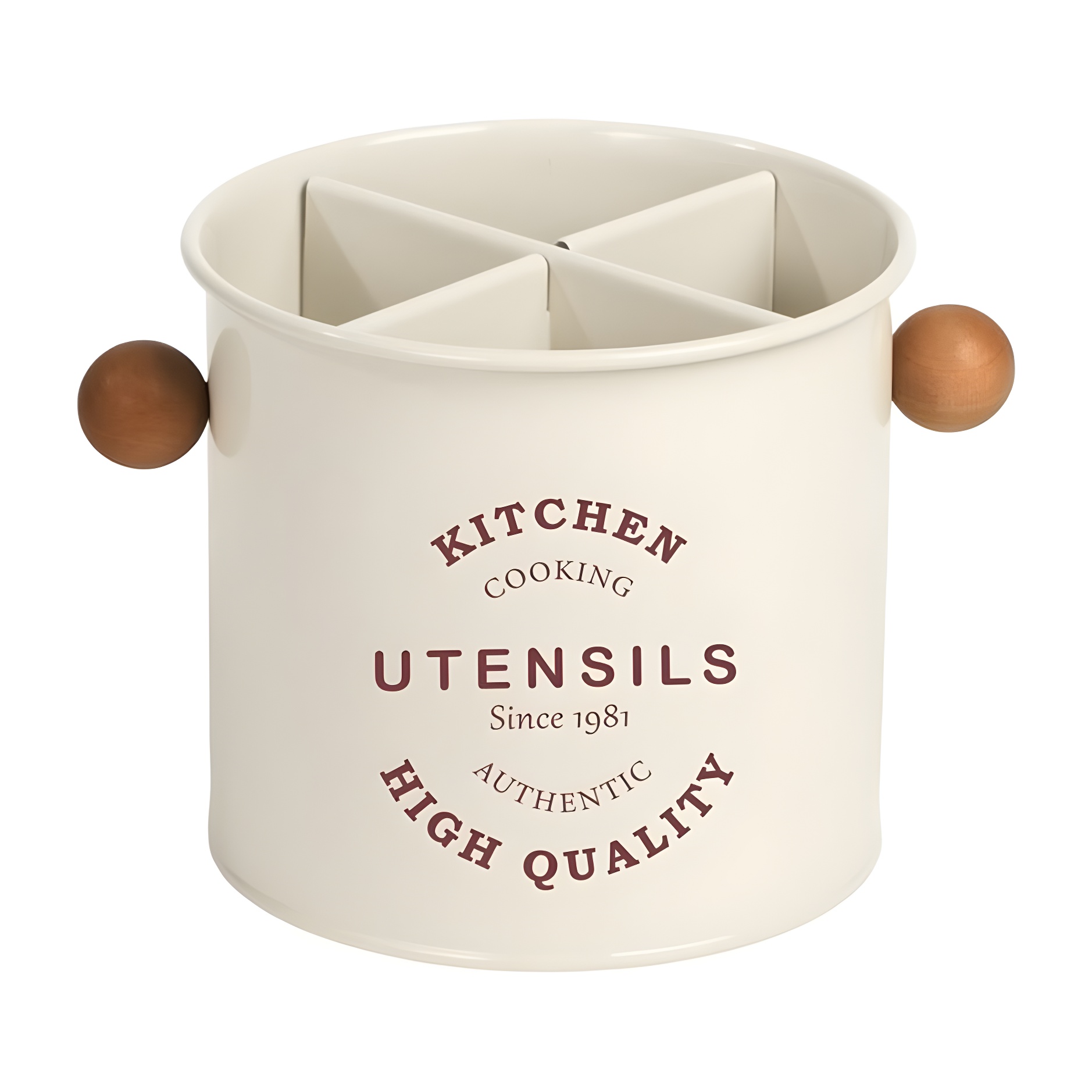 Pot porte-ustensiles au style vintage, conçu pour apporter charme et ordre au plan de travail de votre cuisine. Son esthétique avec lettrage classique allie fonctionnalité et décoration.