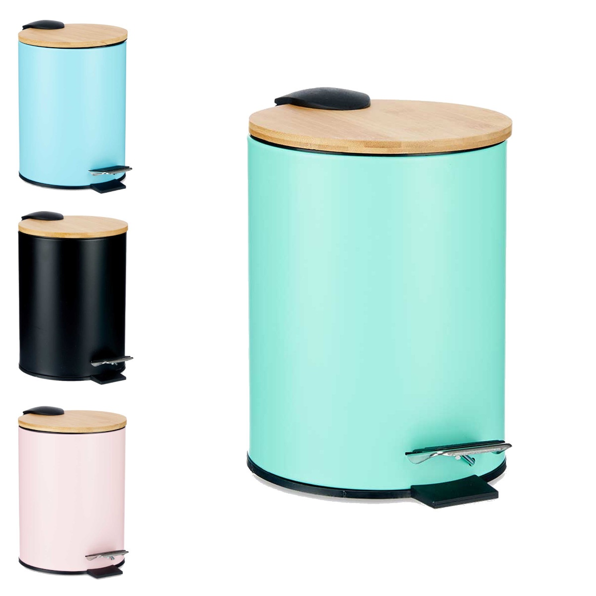 Poubelle de salle de bain de 3 L en couleurs avec couvercle en bambou