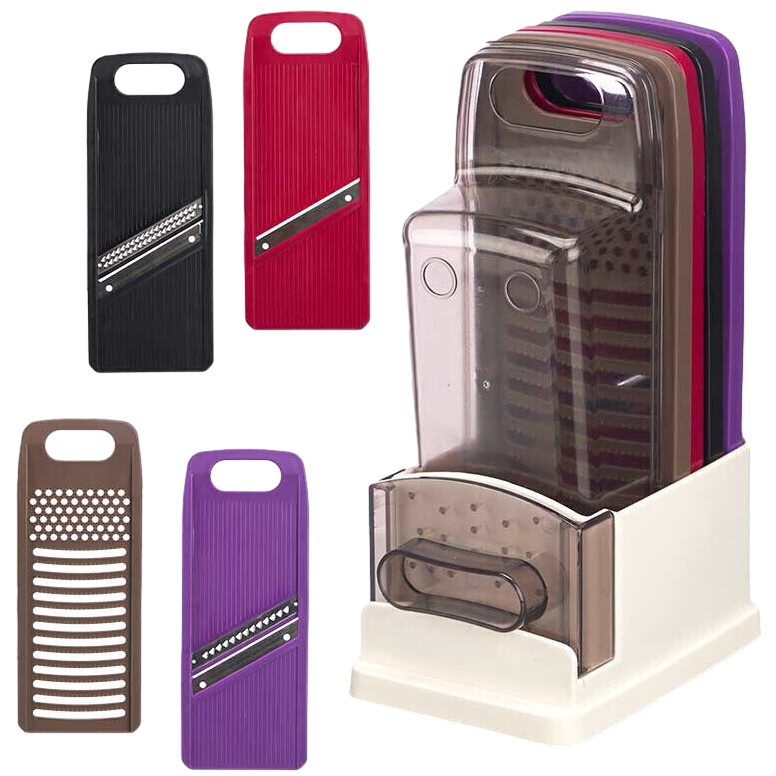• Inclut plusieurs types de râpes et un support pour tout organiser.