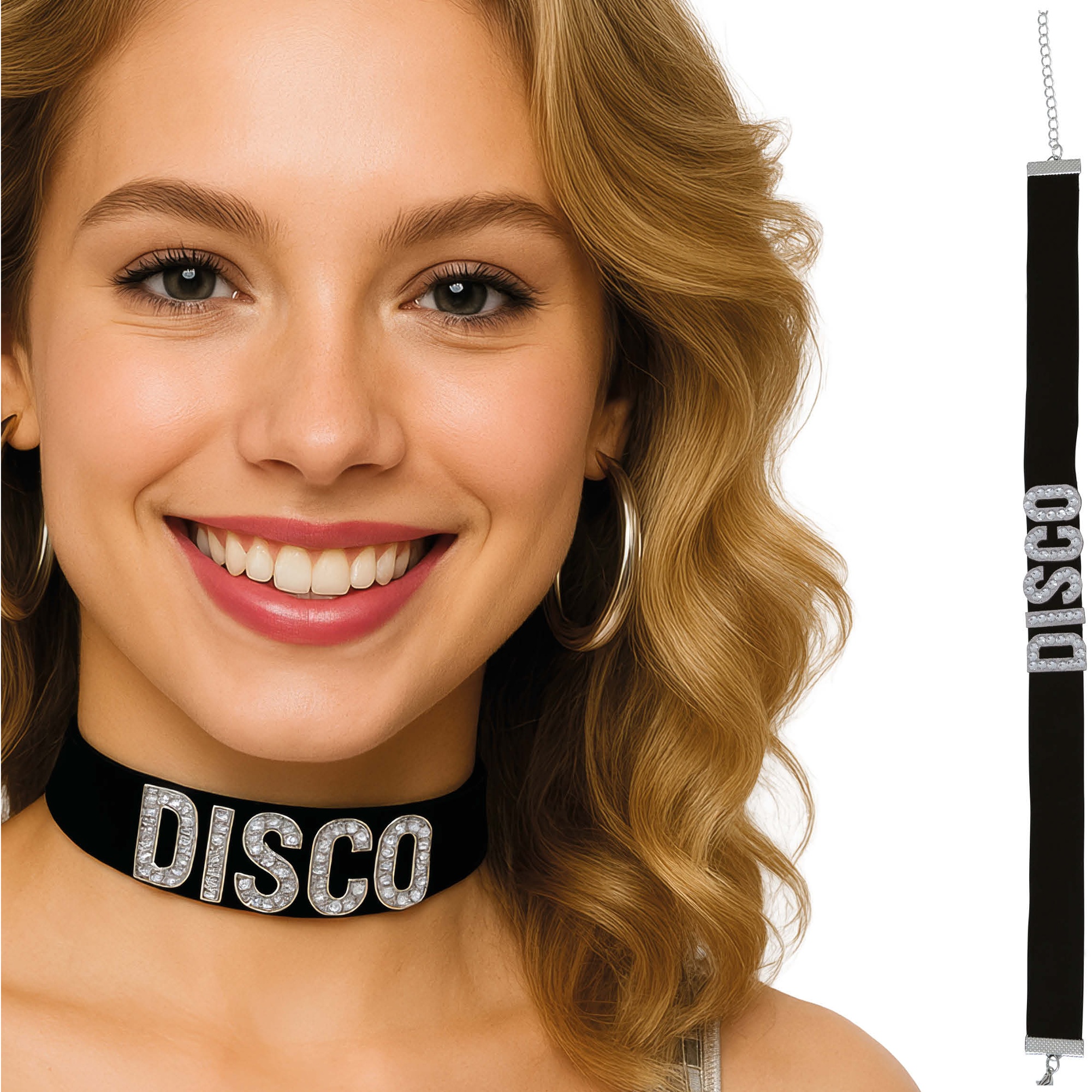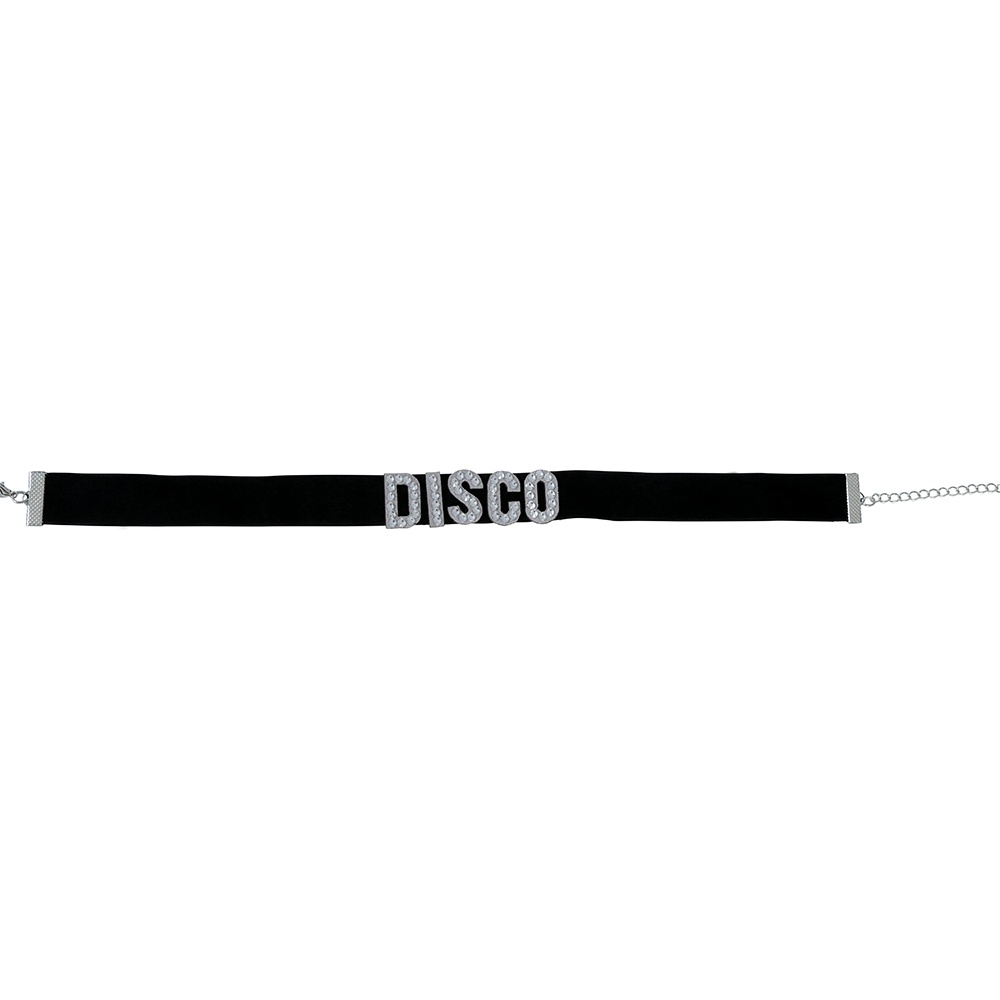 Collier ras-de-cou au style rétro avec lettres "DISCO" en strass, pour une brillance saisissante et une allure festive.