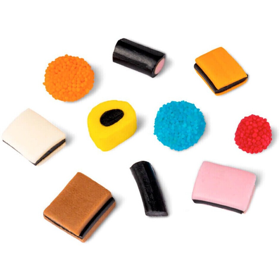 - Assortiment de réglisse aux goûts de citron, mûre, fraise, orange, chocolat.