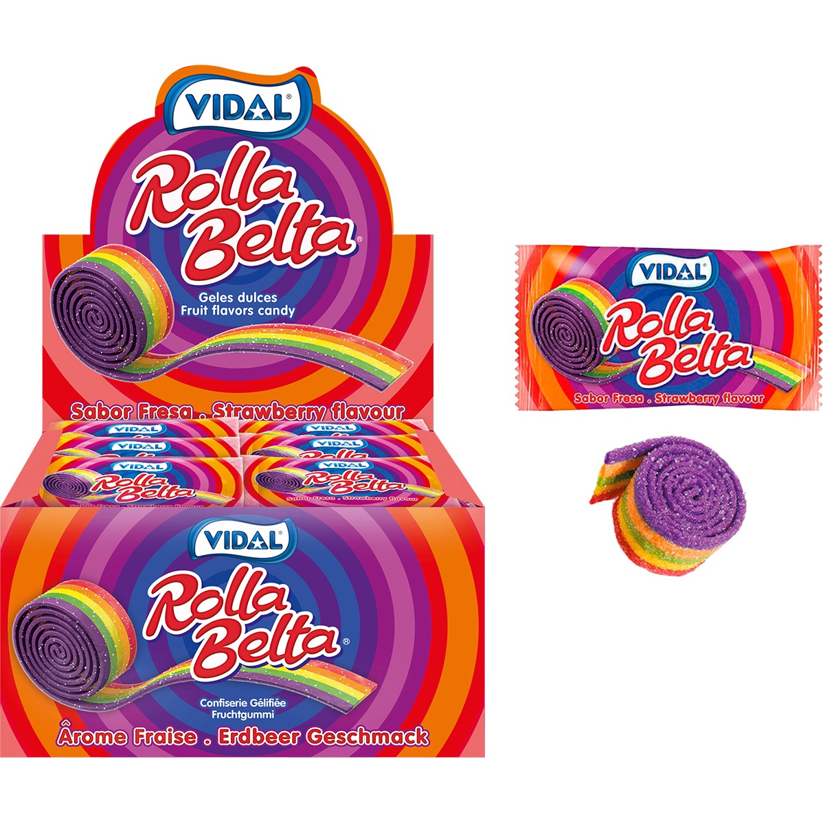 Réglisse Rolla Belta multicolore acidulée - Vidal - 24 unités