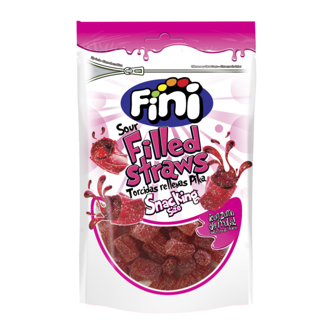 Réglisse rouge à la fraise remplie de sucre pétillant en morceaux de 165 g - Fini Sour Filled Straws