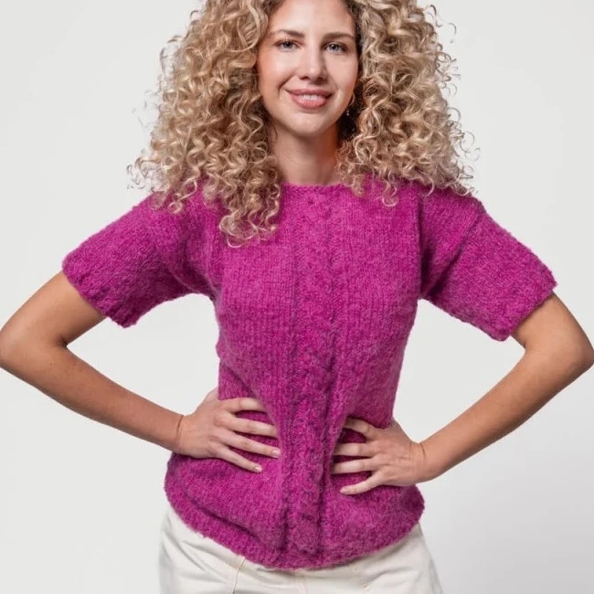 - Pull sans manches avec une tresse centrale. Niveau de difficulté facile.