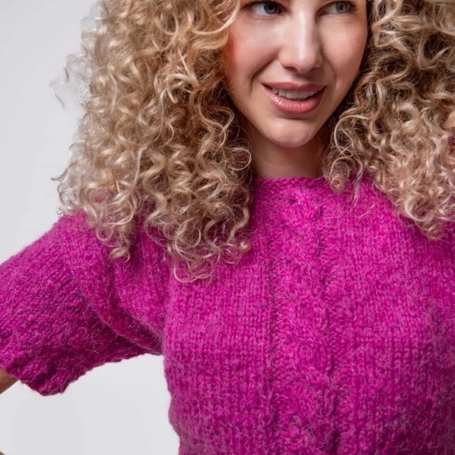 - Il est tricoté en combinant les fils Ankara et Lumina, créant un effet de brillance et des éclats sophistiqués.