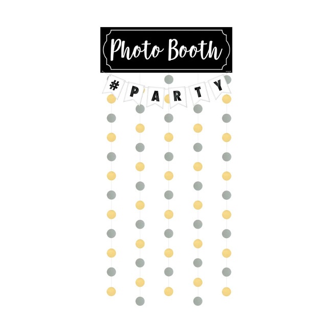 Complétez l'espace pour votre photocall avec ce fond élégant composé d'une affiche noire portant l'inscription photomaton.
