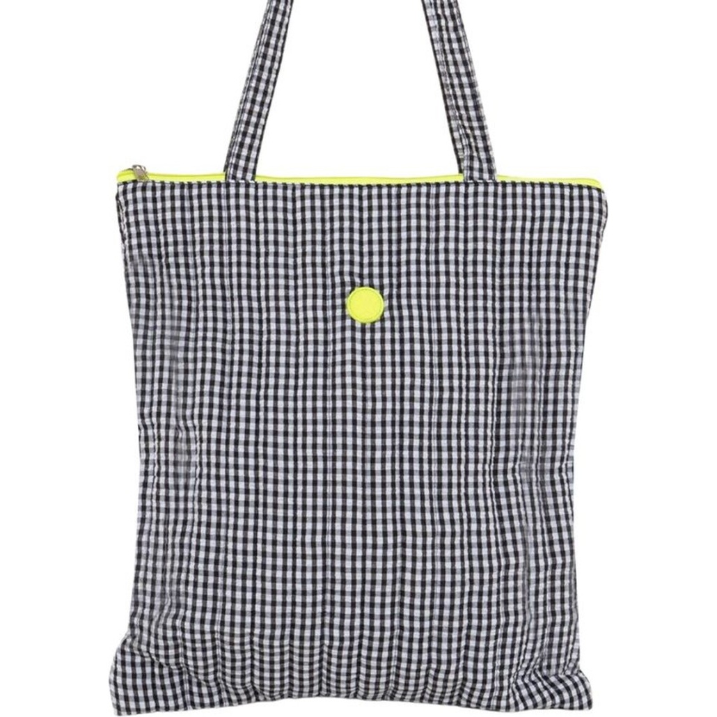 Tote bag à motif Vichy classique et fermeture éclair fluo, pour une touche moderne et remarquable.