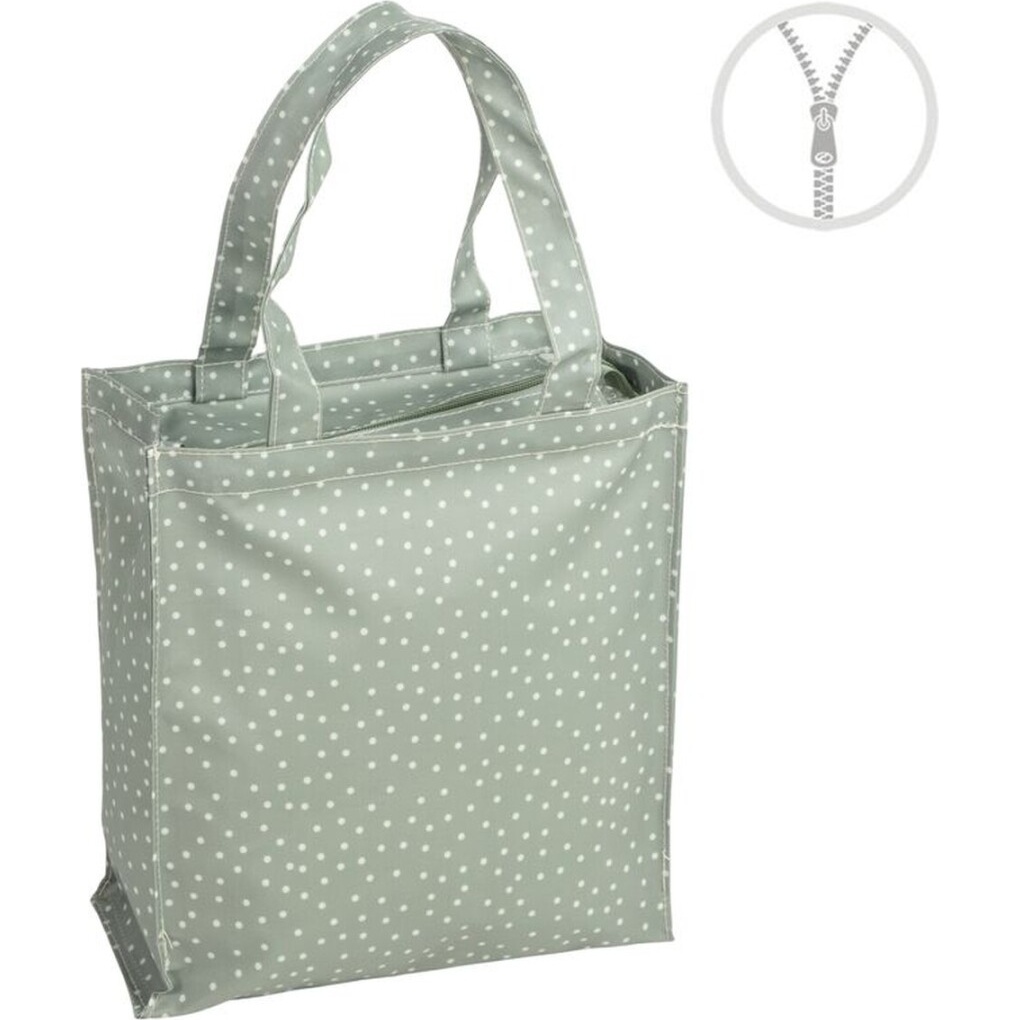 Sac à fermeture éclair, imprimé à pois dans un doux ton vert, conçu pour transporter vos affaires avec confort et style.