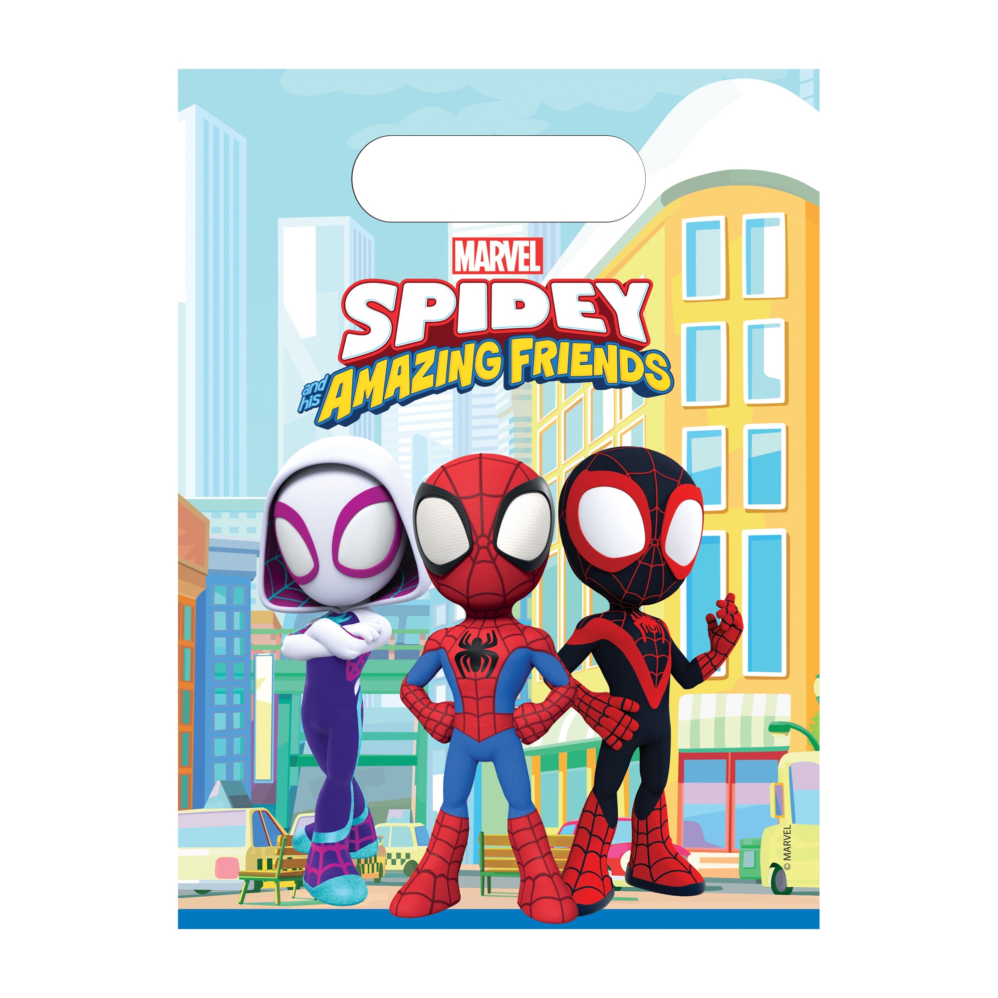 Lot de sacs au design amusant de Spidey et ses amis, idéal pour surprendre les plus jeunes. Graphismes colorés et personnages reconnaissables qui animent toute fête enfantine. Anse découpée pour un transport confortable et une distribution aisée. Conçu pour vous faciliter l'organisation des fêtes et la préparation des petits cadeaux.