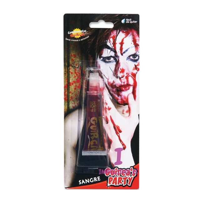 Il est à la hauteur des attentes, il a l'air réaliste. Il est très liquide, il faut donc le verser avec précaution si l'on n'en veut qu'un peu. Il s'enlève très bien de la peau et des vêtements.