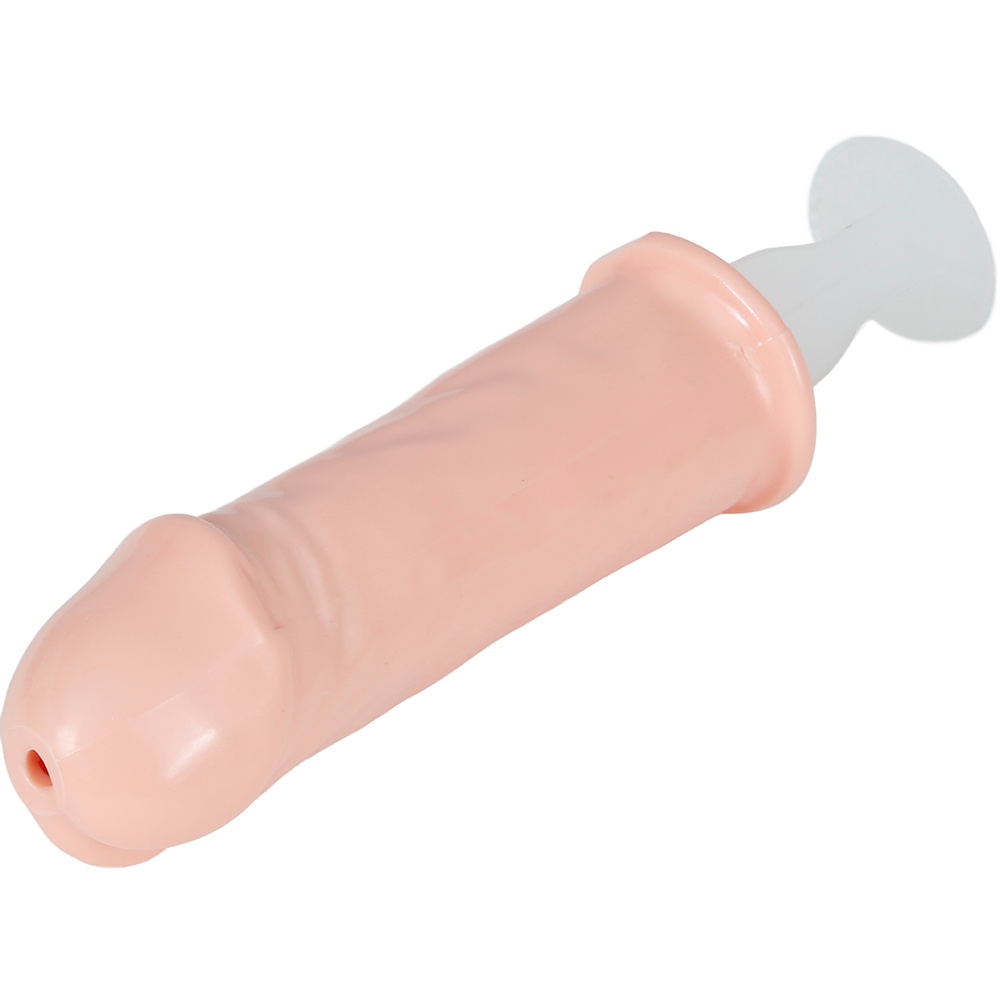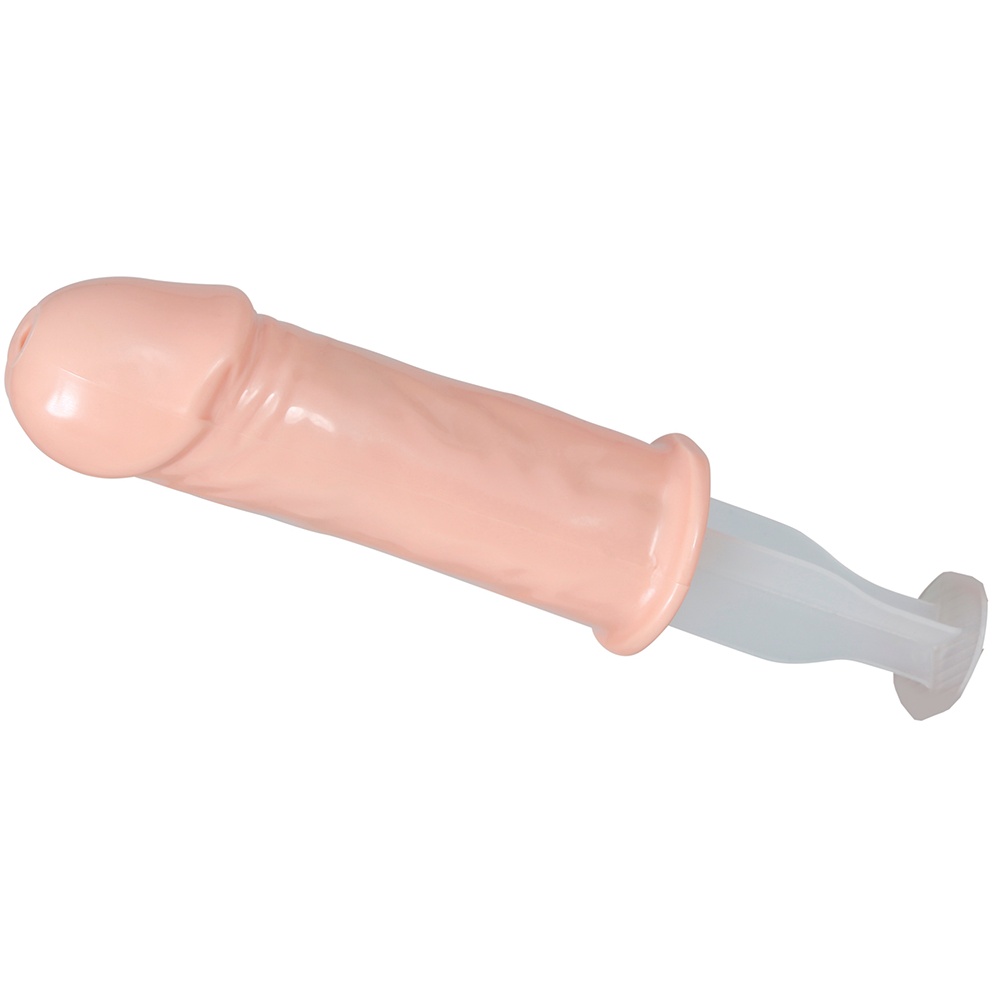 Seringue en forme de pénis de 16 cm conçue pour apporter une touche d'humour à vos célébrations. Fabriquée en PVC souple, elle se remplit et expulse les liquides facilement, produisant un jet amusant et surprenant. Compacte et légère, elle se manipule et se transporte aisément comme cadeau original. Produit de plaisanterie destiné au divertissement lors de vos réunions et enterrements de vie de célibataire.