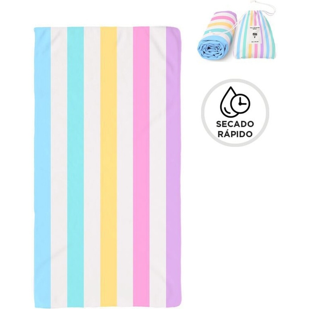 Serviette à séchage rapide à rayures colorées avec sac de transport