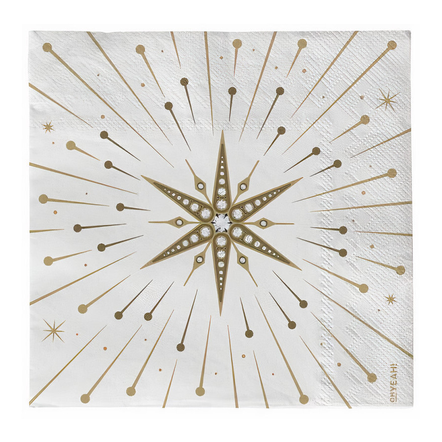 Serviettes 16,5 x 16,5 cm avec motif d'étoile blanche - 30 unités