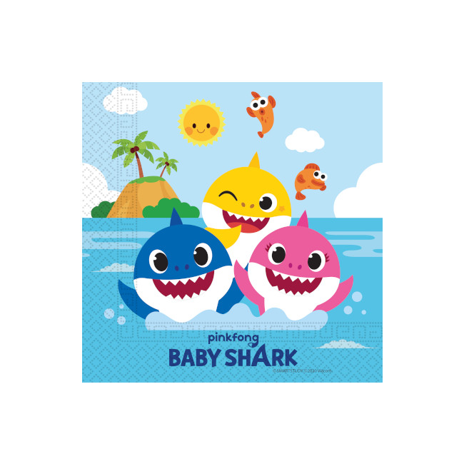 Serviettes de la famille Baby Shark de 16,5 x 16,5 cm - 20 unités