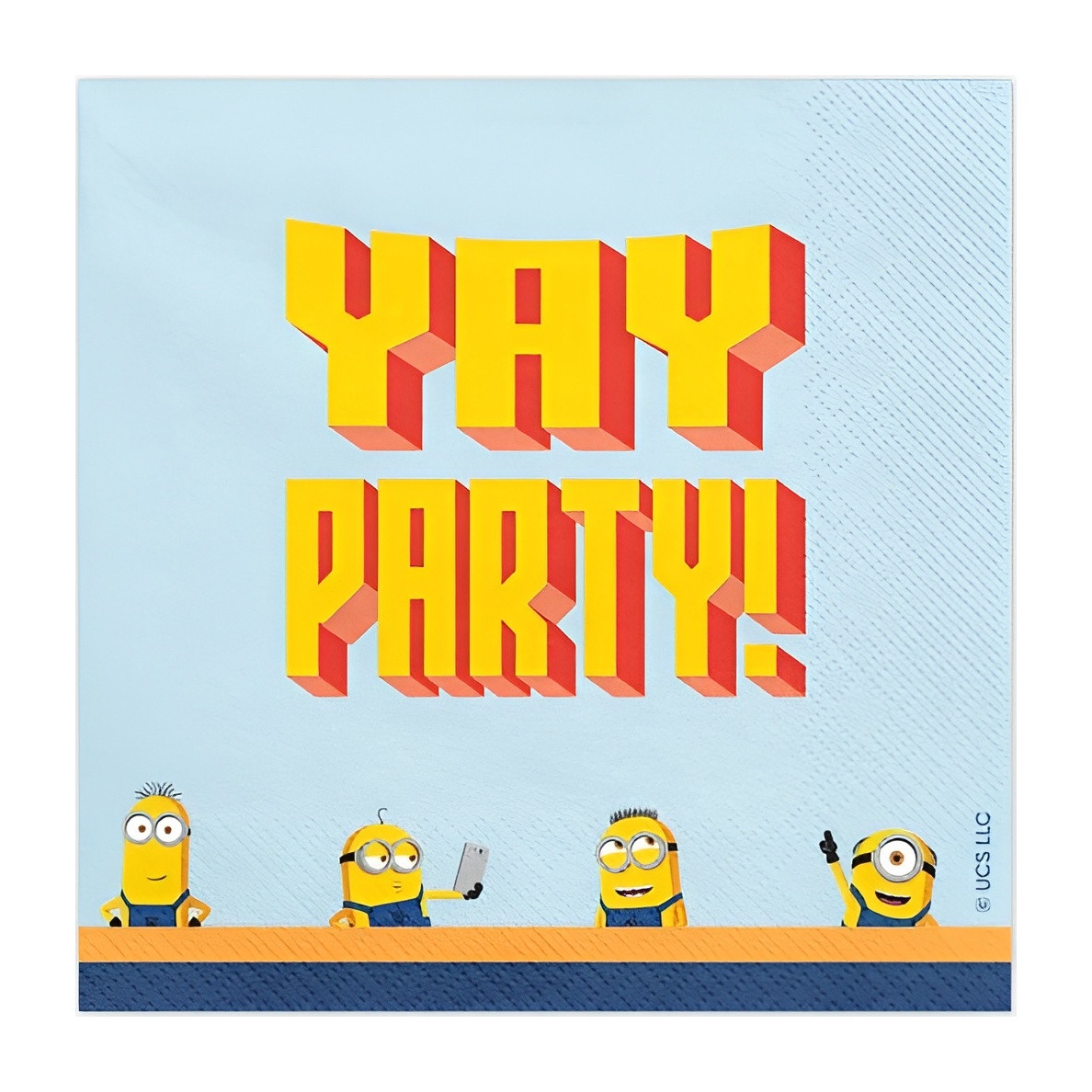 Serviettes en papier ornées des emblématiques Minions et de l'inscription « Yay Party! » en bleu et jaune. Design joyeux qui apporte une touche amusante et reconnaissable à la table. Composées de 2 épaisseurs pour une meilleure résistance et un toucher agréable. Dimensions dépliées: 33 x 33 cm ; pliées: 16,5 x 16,5 cm. Présentation pratique: paquet de 20 unités.