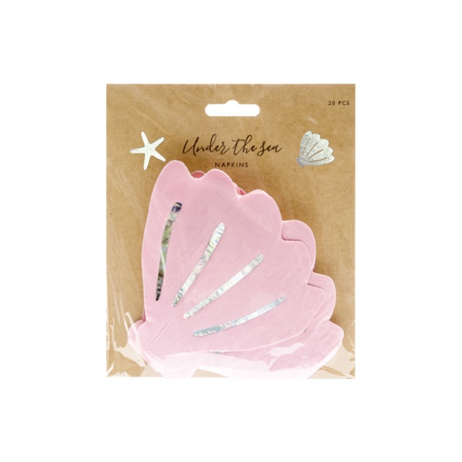 Ce produit se compose de 20 serviettes qui reproduisent la forme et le design d'un coquillage rose, orné de lignes irisées très frappantes.