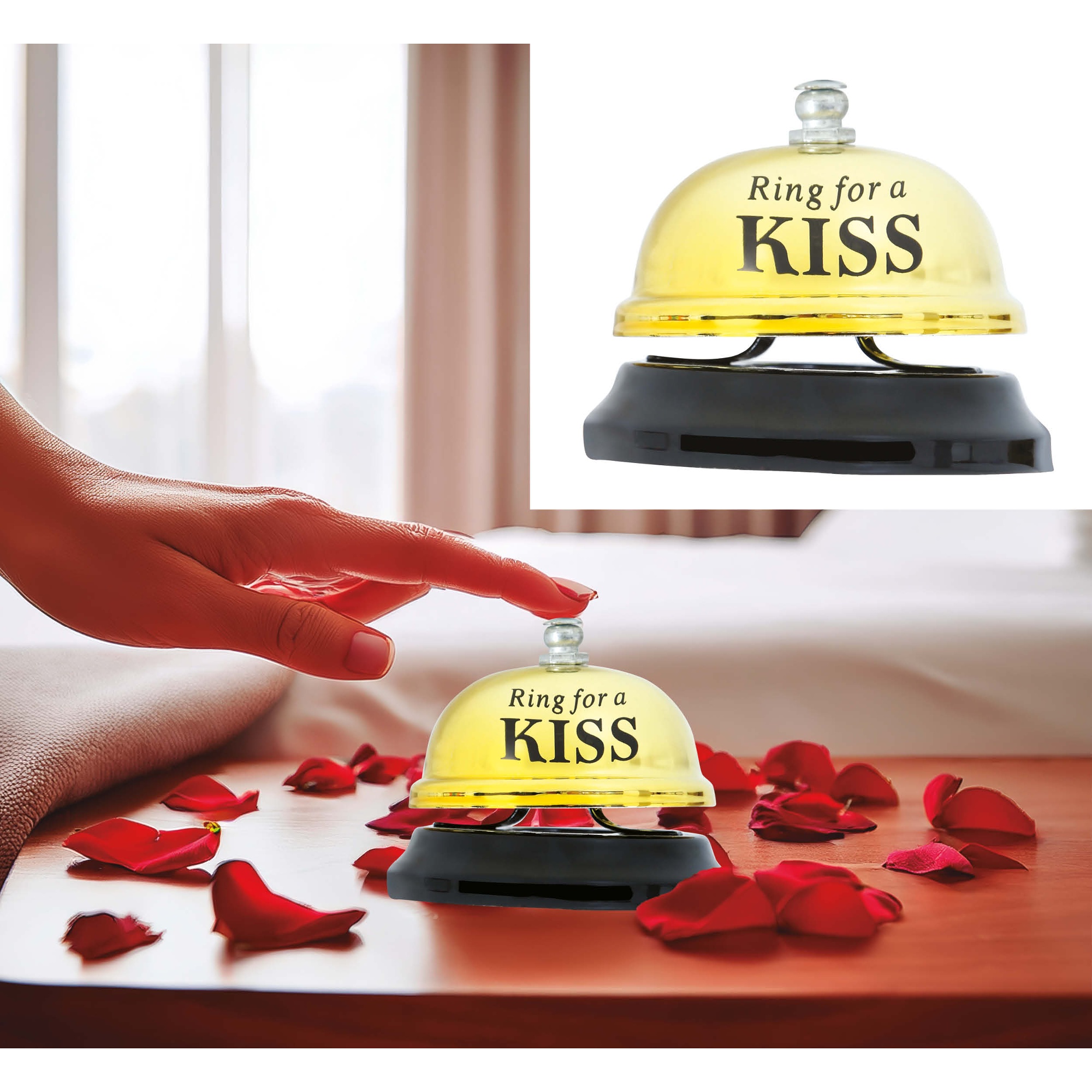 • Design romantique avec l'inscription « Ring for a KISS », pour une touche ludique et coquette.