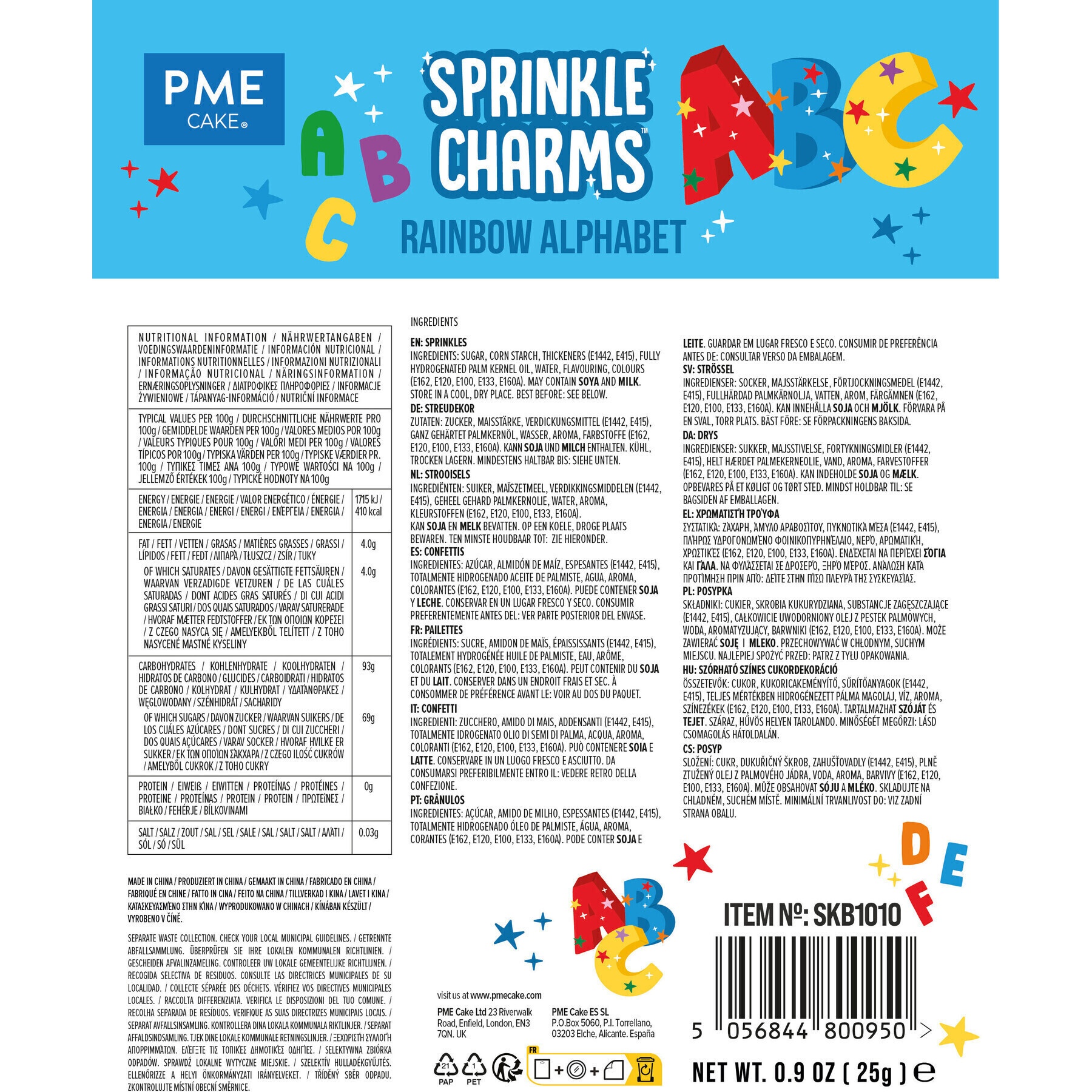 Sprinkles alphabet arc-en-ciel de 25 gr - PME