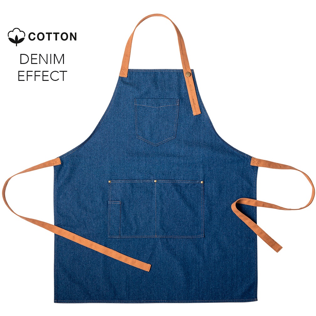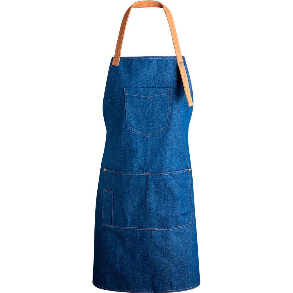 - Tablier de haute qualité en tissu denim résistant.