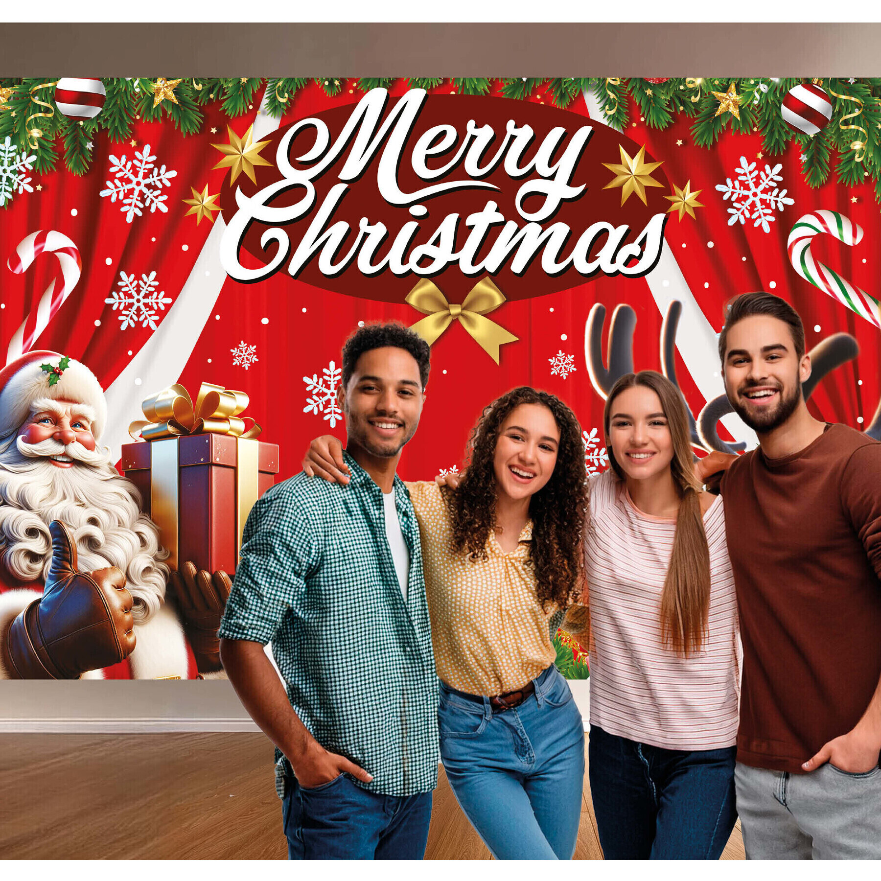 Toile de fond pour photocall Merry Christmas de 2,20 x 1,50 m