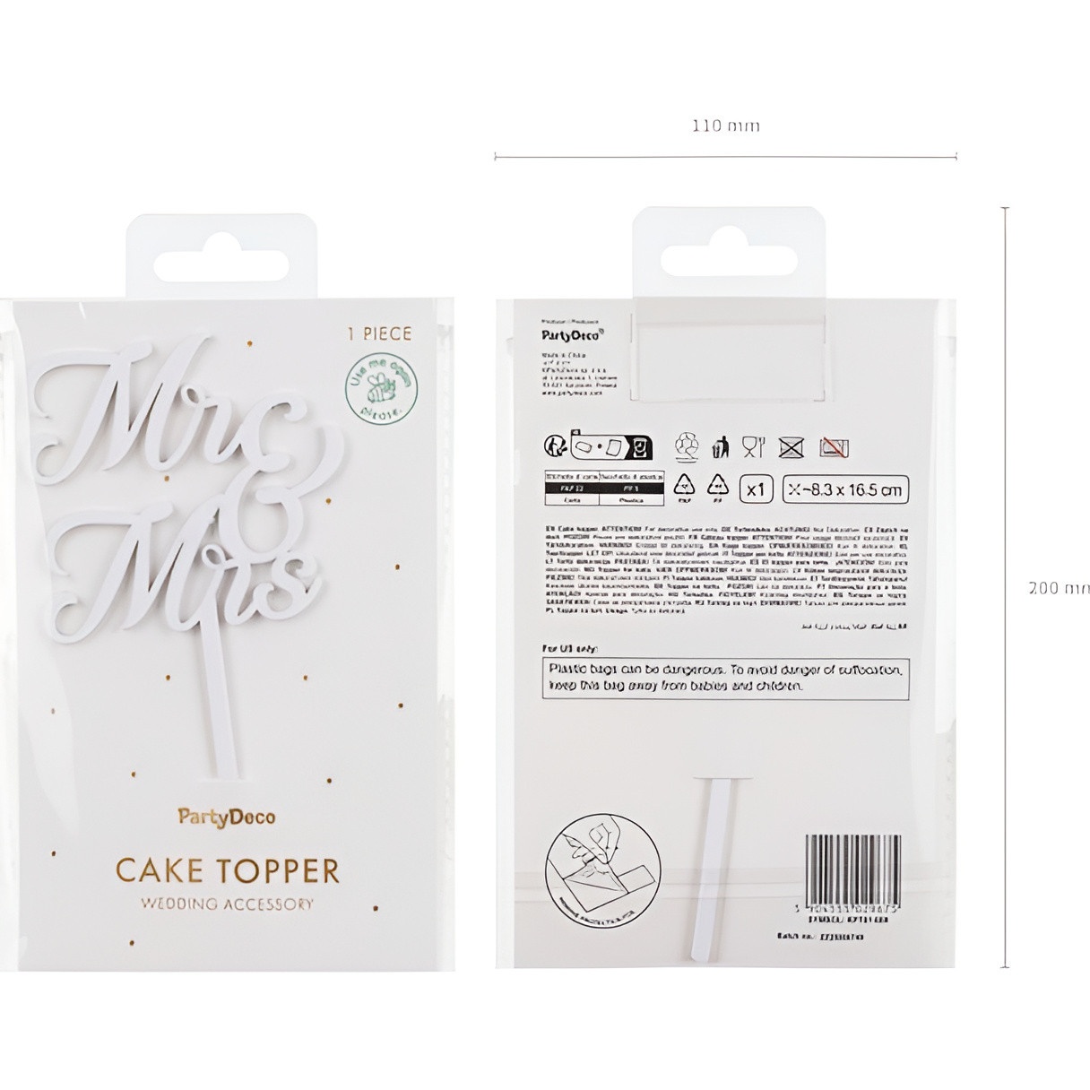 Hauteur approximative 16,5 cm et largeur approximative 8,3 cm, avec tige d'insertion intégrée assurant une tenue stable sur les gâteaux à étages.
